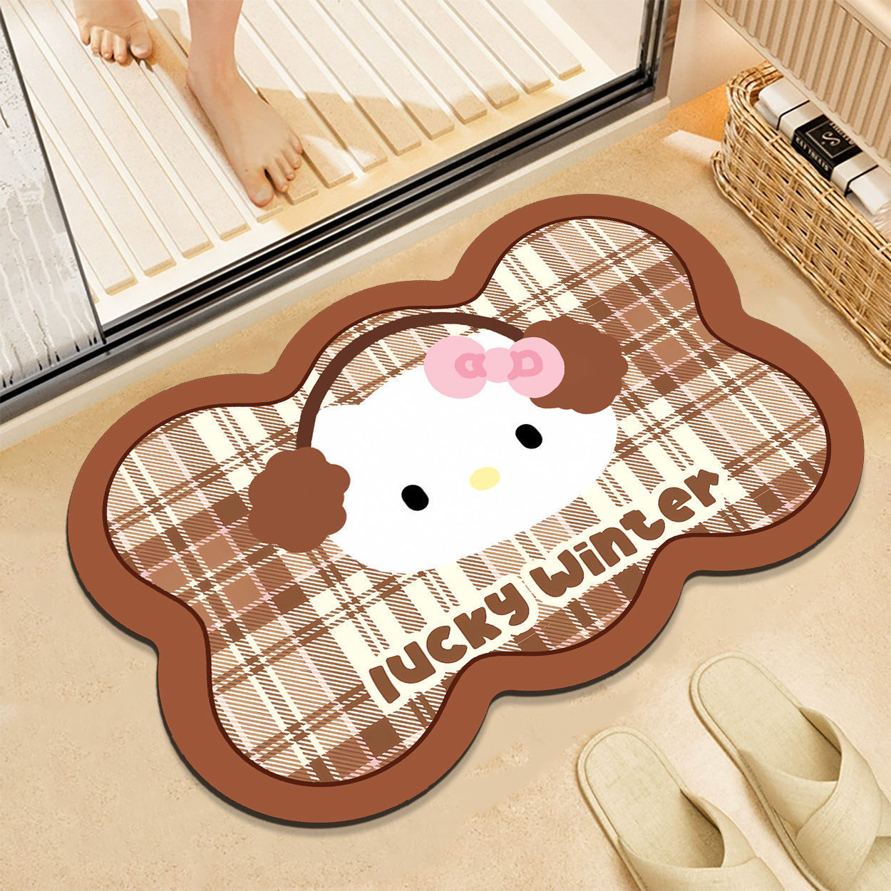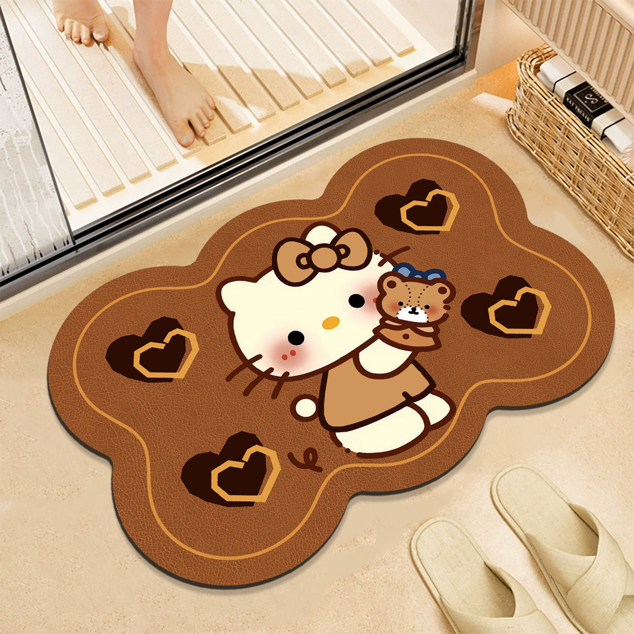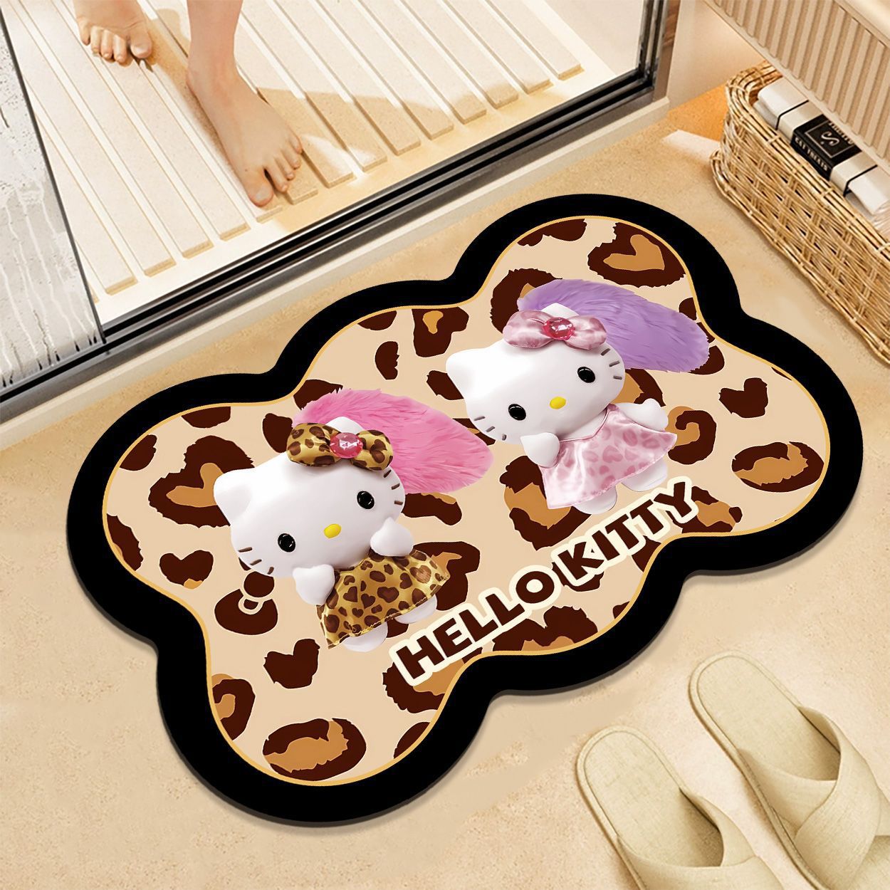 레오파드 헬로 키티 고양이 디 아톰 진흙 매트 샤워 문 빠른 건조 흡수성 발 매트 먼지 저항하고 관리하기 쉽습니다.스토어 가기