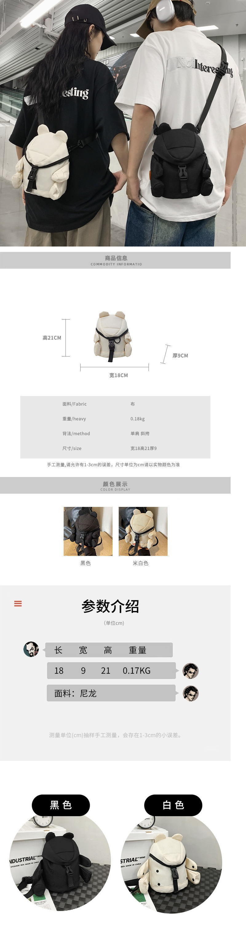 귀여운 곰 가방 여성 가방 배낭 만화 일본 스타일 새로운 크로스 바디 가방 소녀의 어깨 가슴 가방 작은 가방 허리 가방