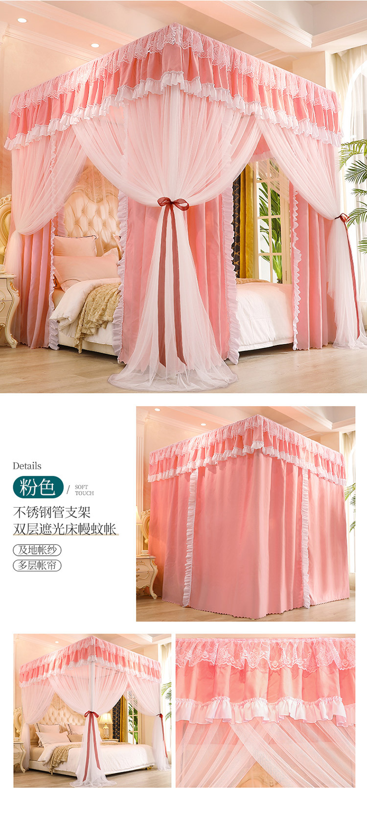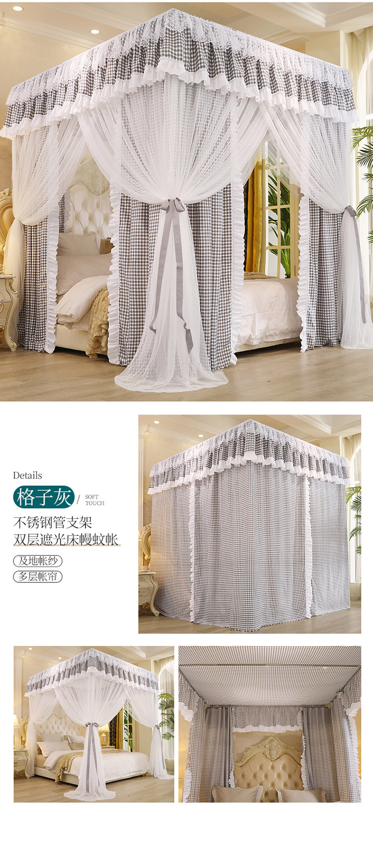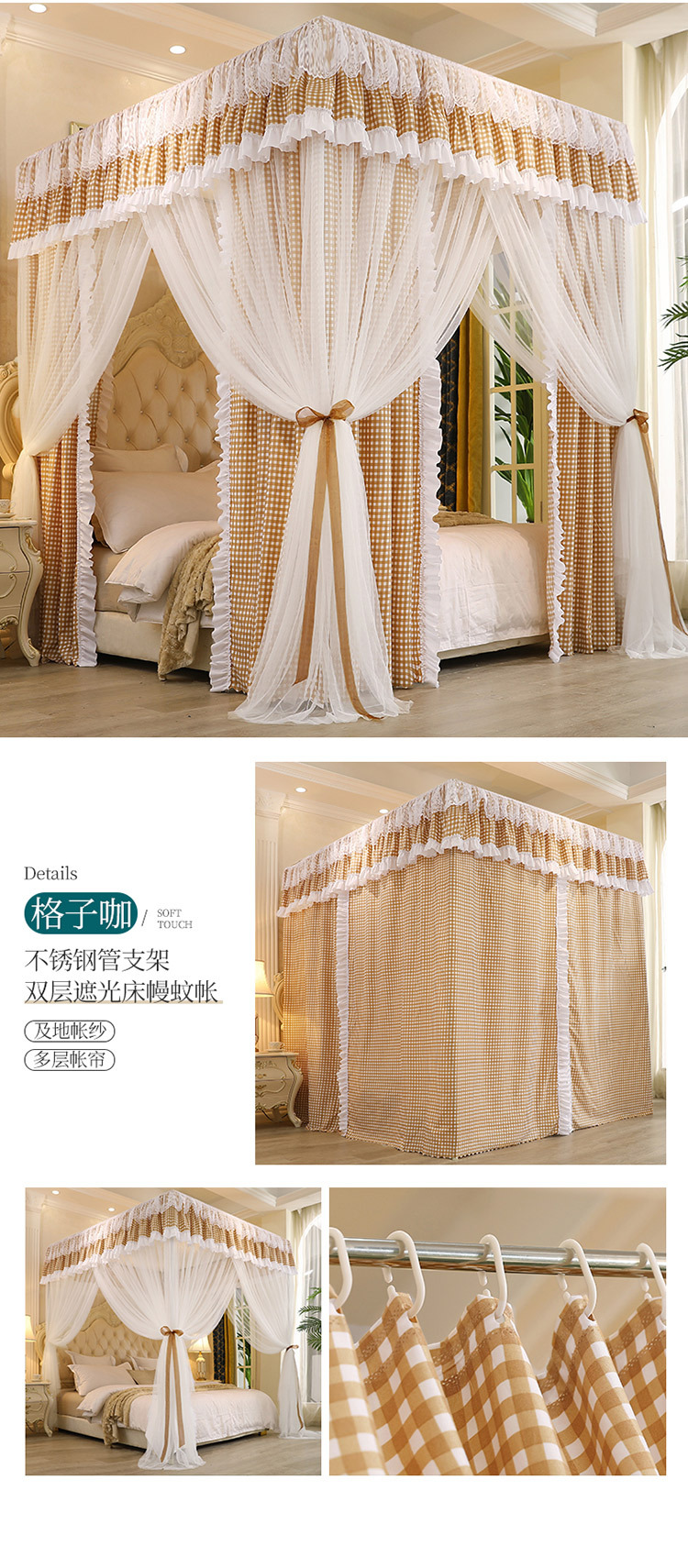 Fc 더블 레이어 모기장 커튼 통합 가정용 유럽 스타일 브래킷 1.8m 그늘 1.5 m 2 공주 바람 음영 침대스토어 가기