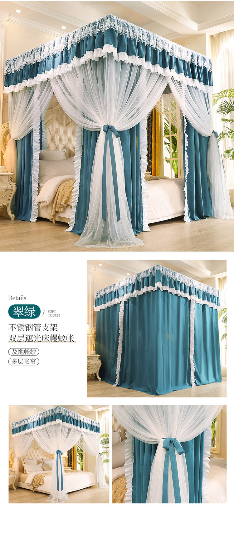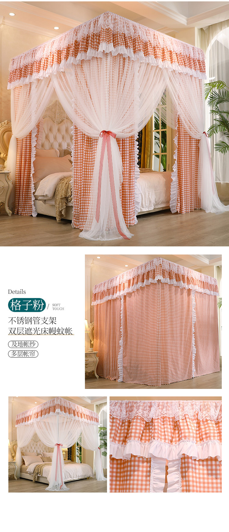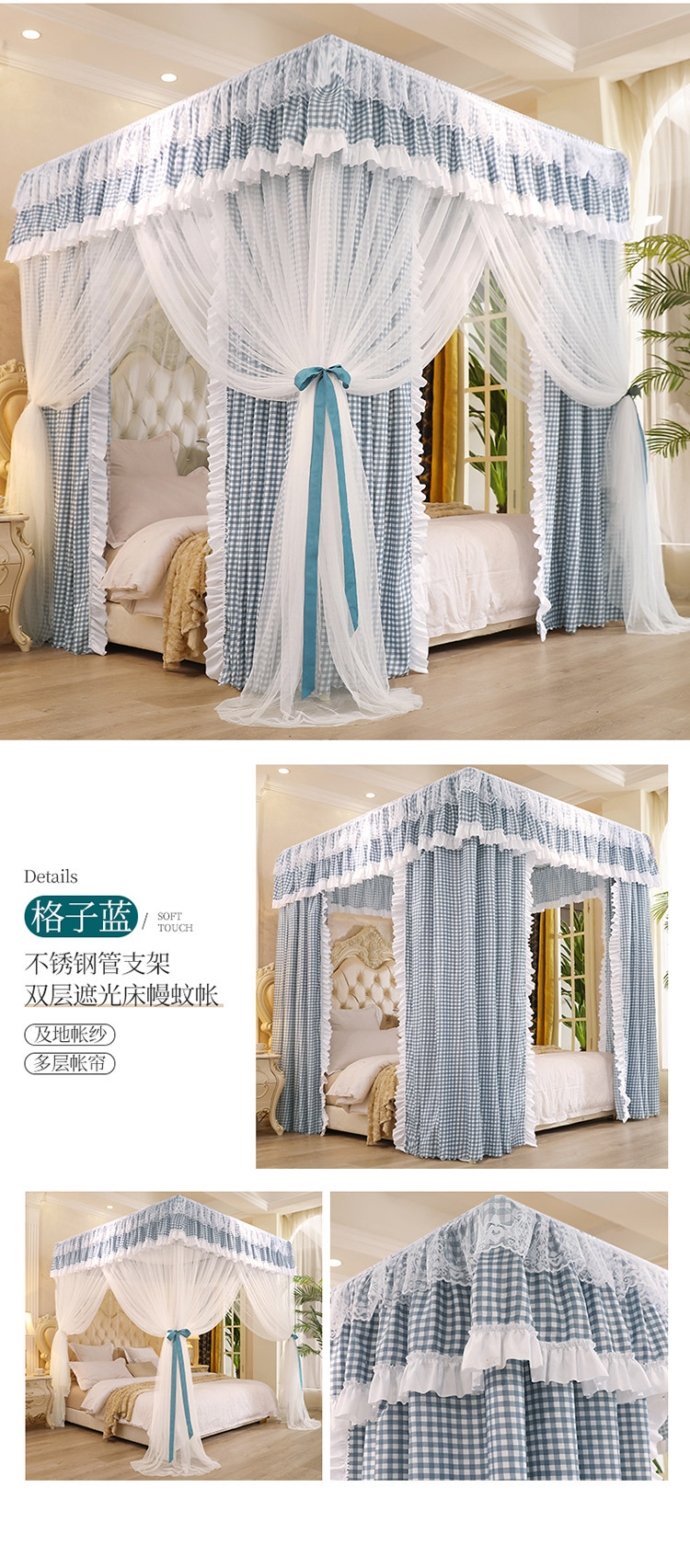 Fc 더블 레이어 모기장 커튼 통합 가정용 유럽 스타일 브래킷 1.8m 그늘 1.5 m 2 공주 바람 음영 침대스토어 가기
