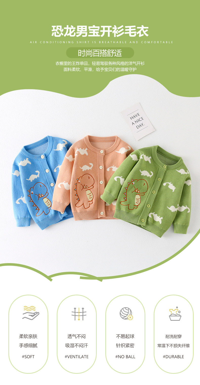 아기용 단일 스웨터 봄 가을 의류 유아 니트 가디건 남녀 아동용 스웨터 코트 면 소재 아동용 공룡 디자인스토어 가기
