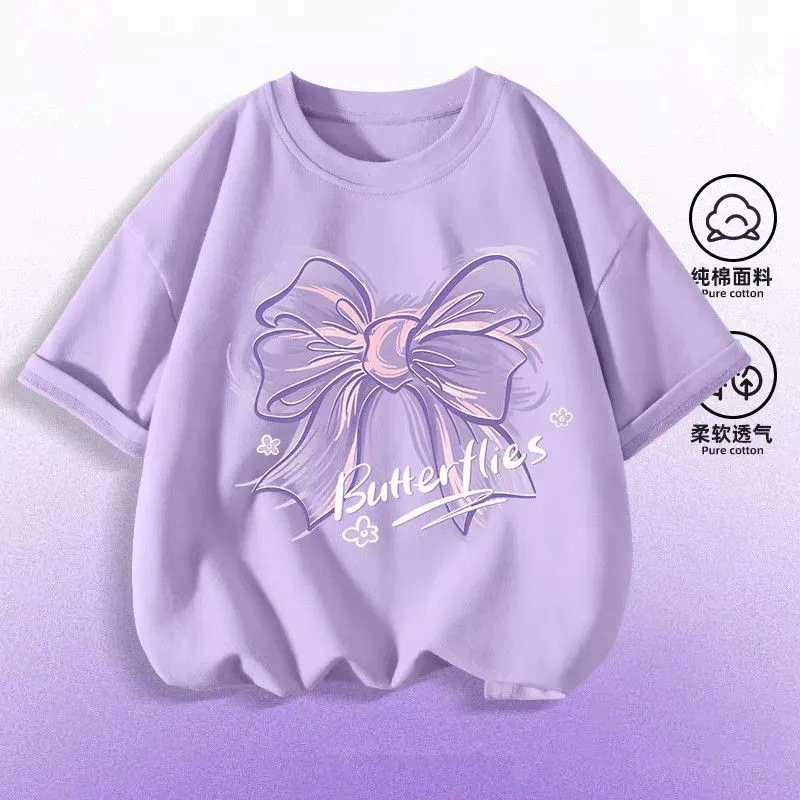 여자 반팔 순수 코튼 2025 여름 어린이상의 여자 여름 새로운 인터넷 연예인 스타일 반팔 아동 티셔츠스토어 가기