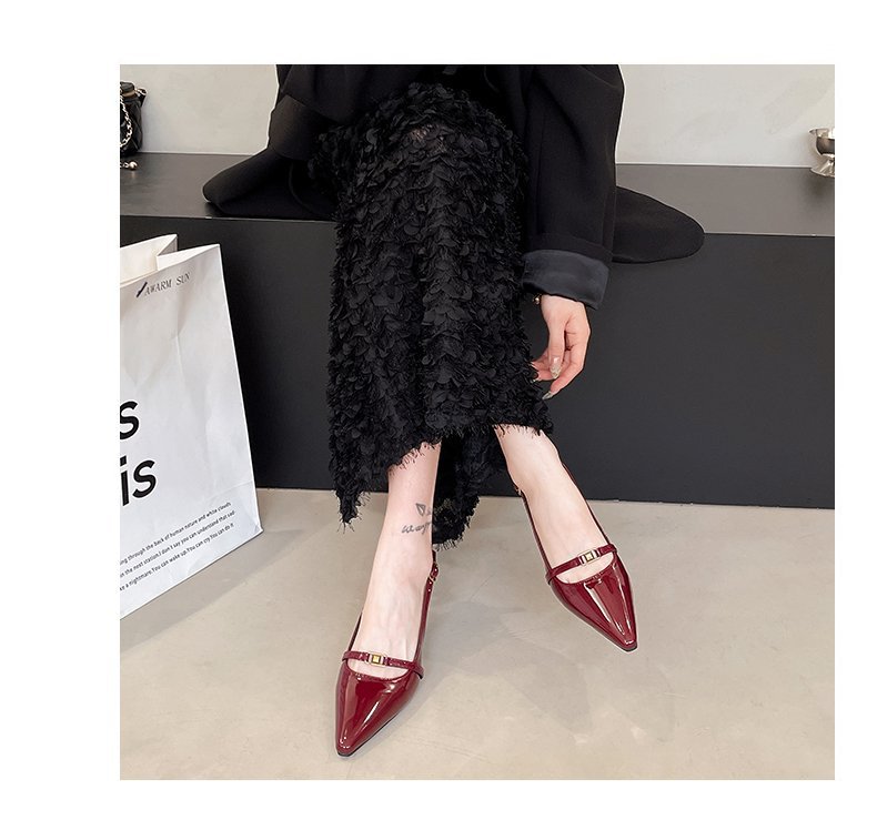 2025 봄과 여름 새로운 포인팅 한 캐릭터 버클 싱글 슈즈 얇은 힐 우아한 섹시한 바오터 리어 트립 샌들스토어 가기