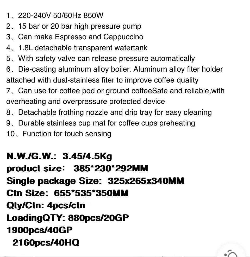 에스프레소 커피 기계 가정용 고압 추출 작은 사무실 반자동 에스프레소 기계 증기 우유 거품 기계