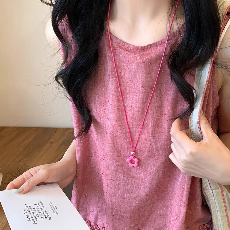 도파민 드롭 유약 할로우 꽃 펜던트 목걸이 여성용 달콤한 틈새 스타일 콜라본 체인 올 매치 넥 교수형 액세서리스토어 가기
