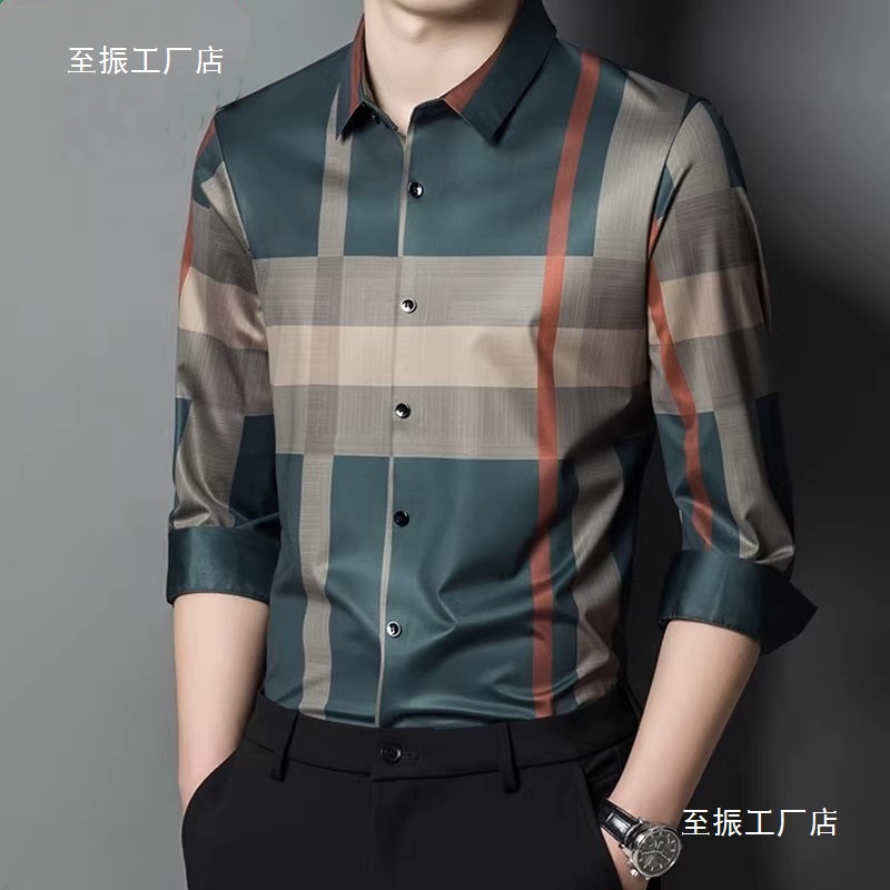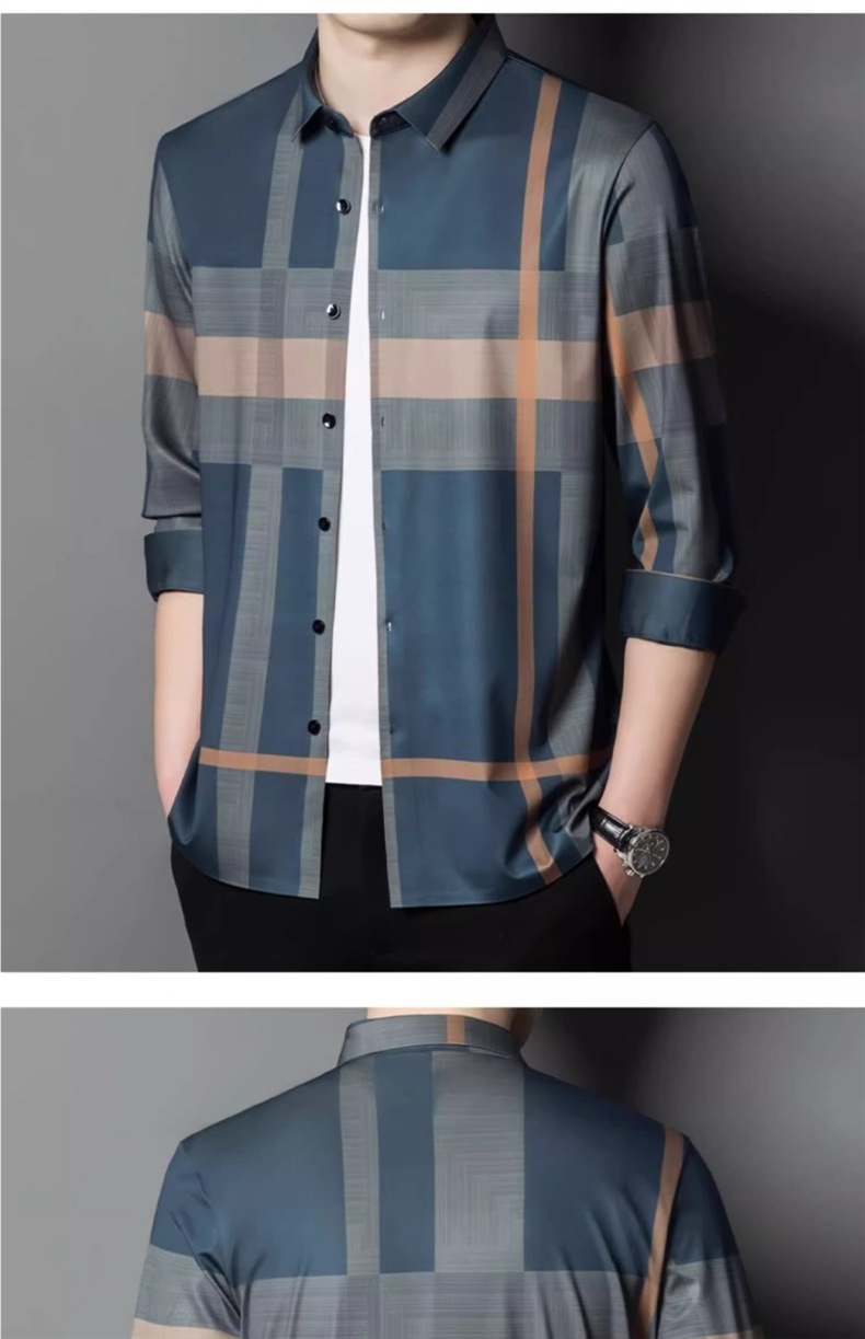 새로운 2025 봄 캐주얼 얇은 스타일 플러스 사이즈 셔츠 남성 프린트 카디건 긴 소매 스퀘어 칼라 남성 셔츠스토어 가기