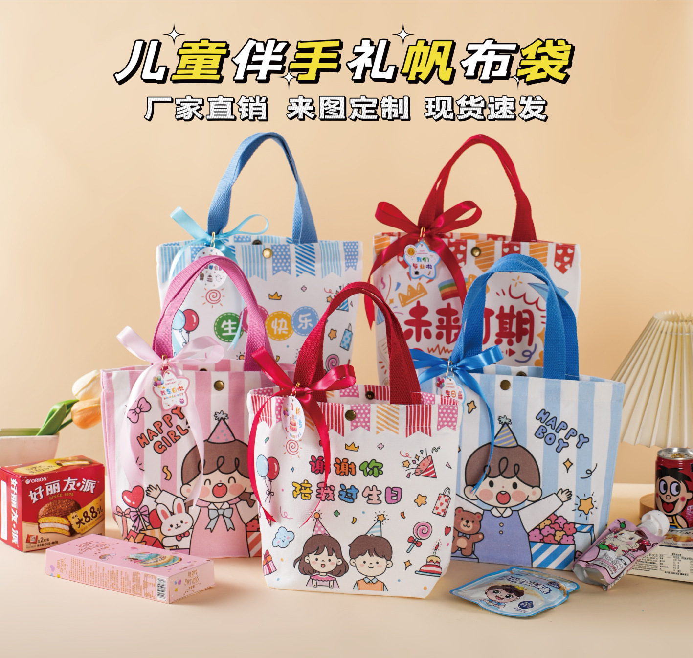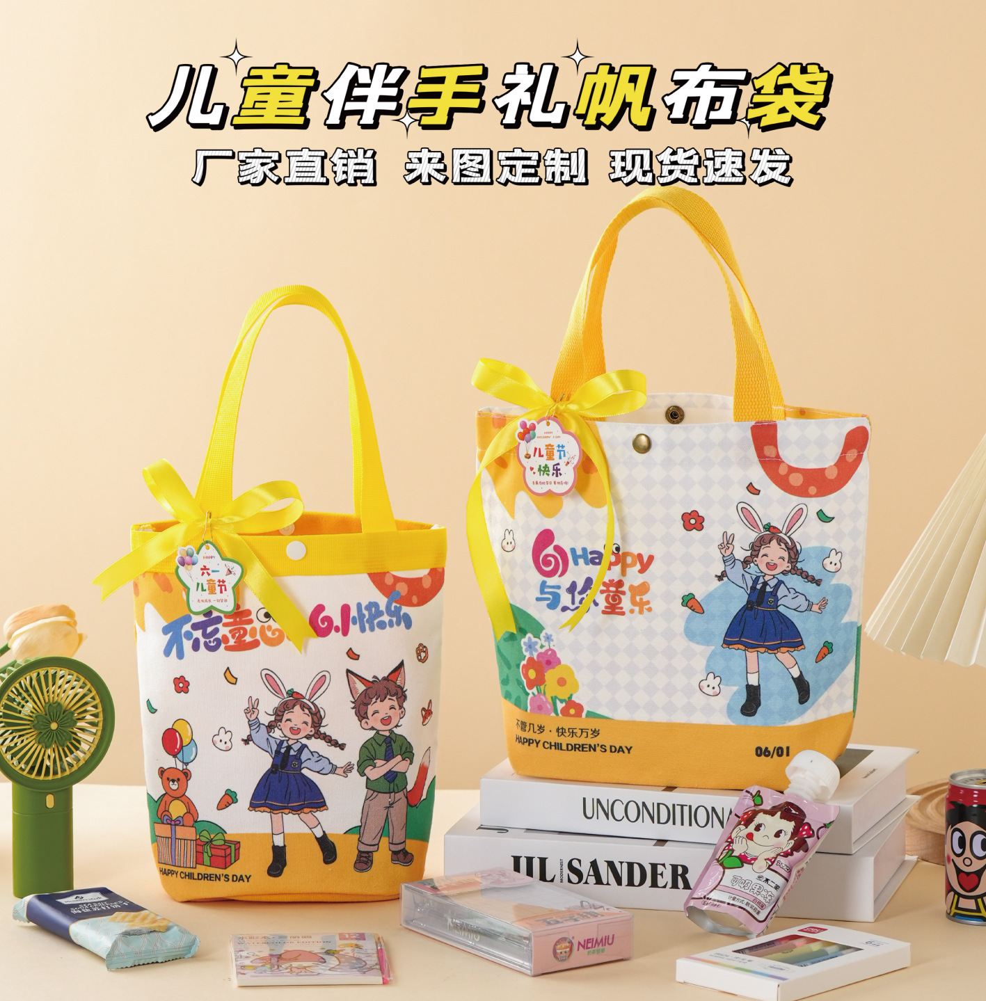 어린이 날 선물 캔버스 가방 만화 토트 백 백 일 연회 선물 가방 생일 선물 가방 도매