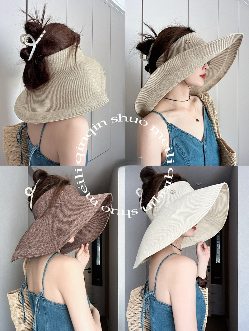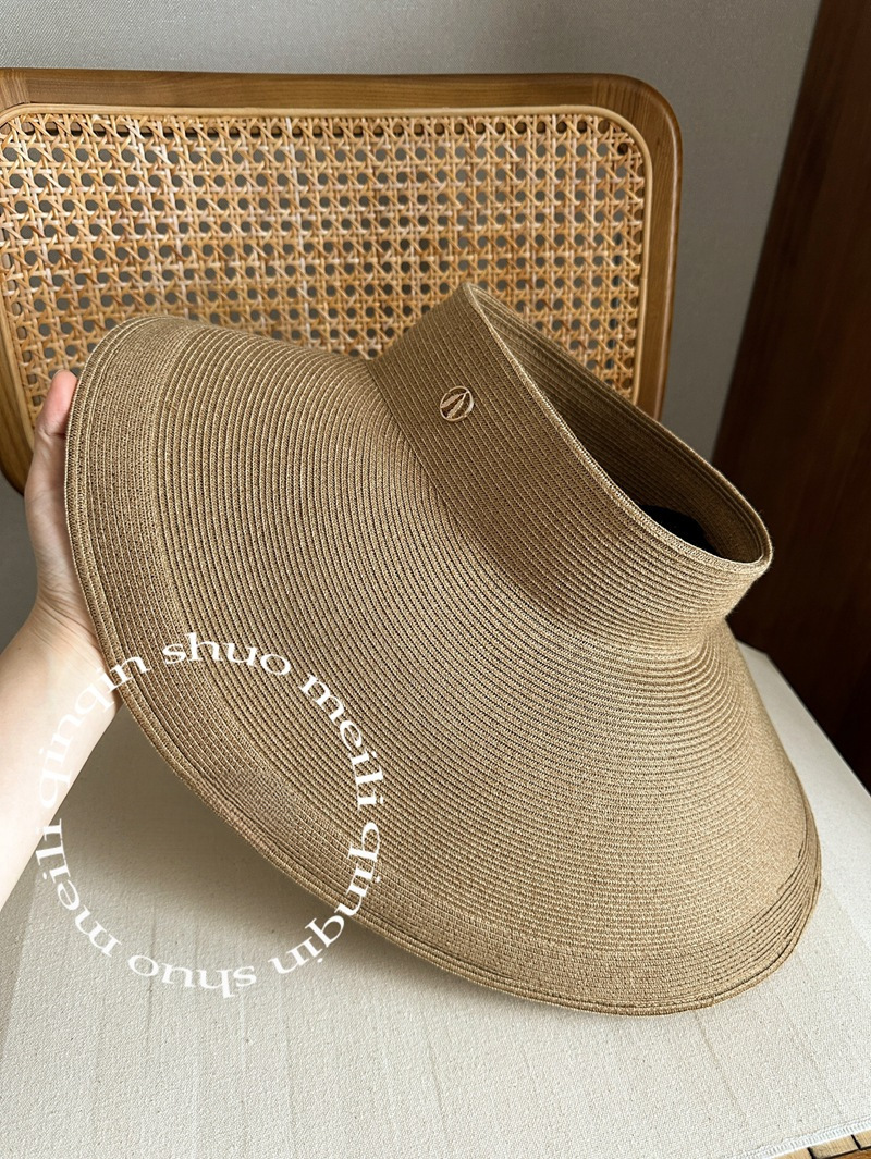새로운 봄, 여름 프랑스 스타일 18cm 초대형 챙 불규칙한 챙 빈 탑 태양 모자 접이식 세탁 가능한 태양 모자스토어 가기