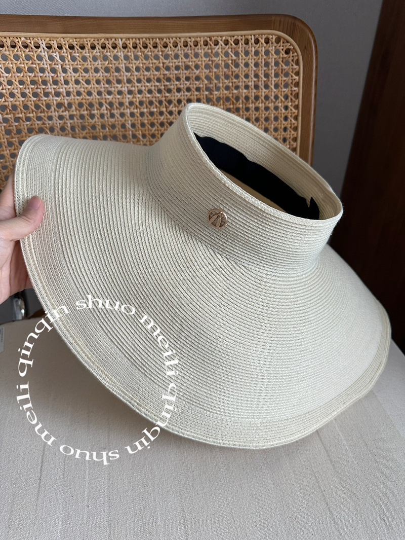 새로운 봄, 여름 프랑스 스타일 18cm 초대형 챙 불규칙한 챙 빈 탑 태양 모자 접이식 세탁 가능한 태양 모자