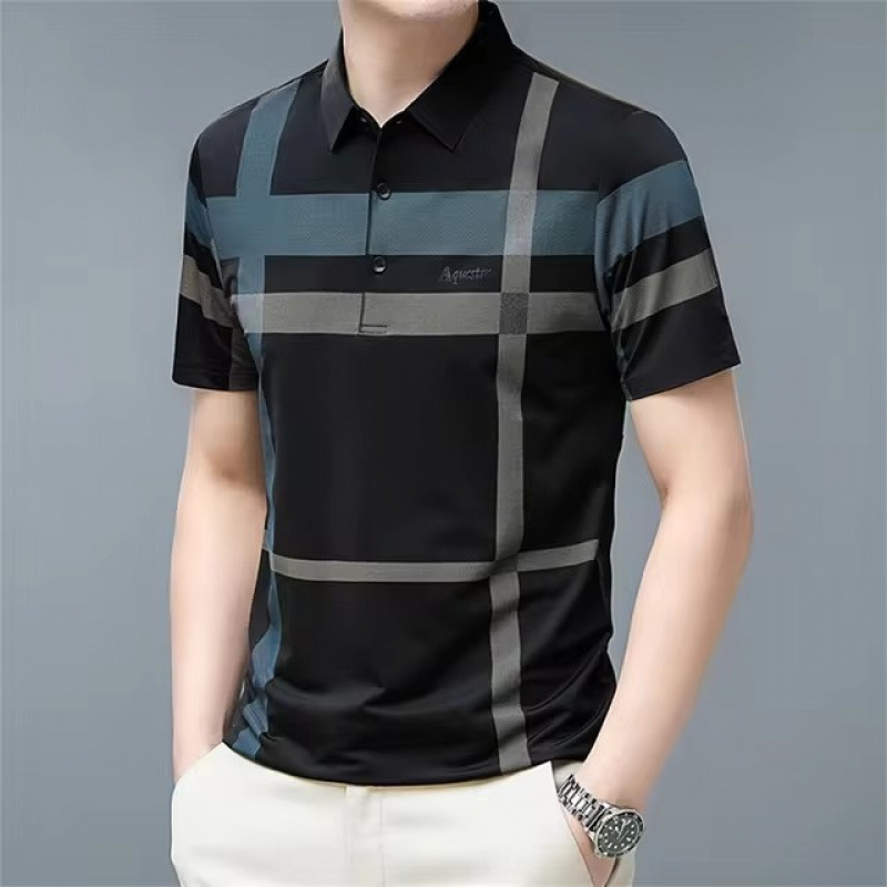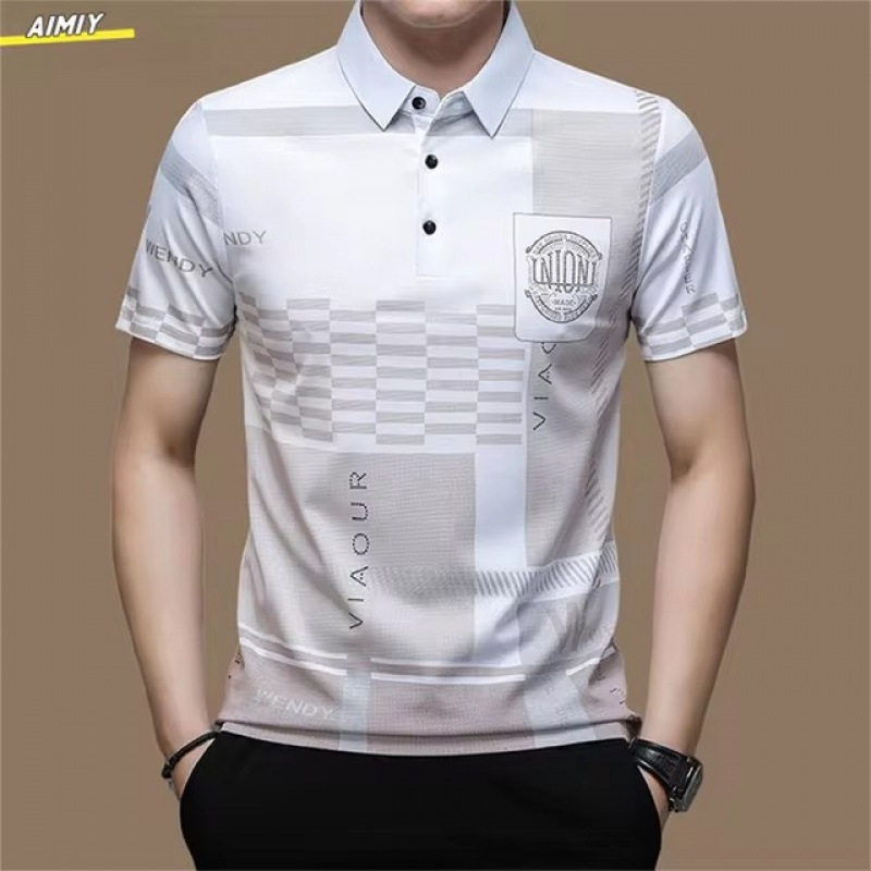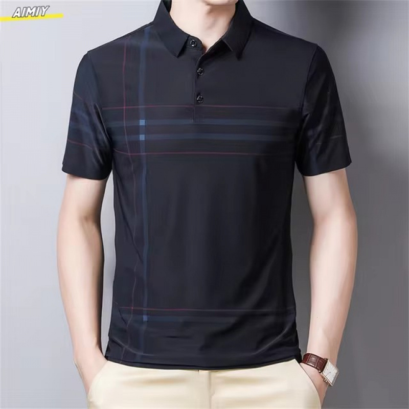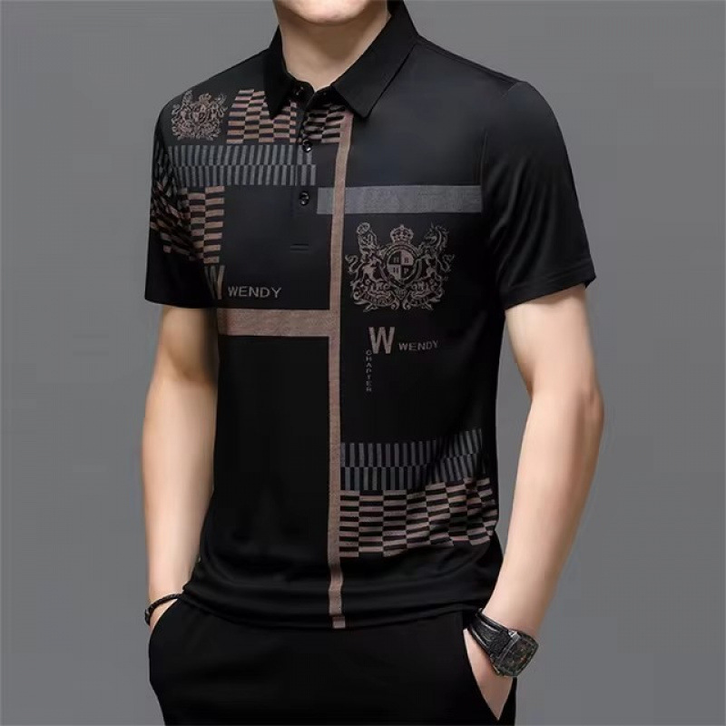 2025 버튼 새로운 3D 디지털 패션 크로스보더 유럽과 미국 남성 라펠 패션 슬림 남성 티셔츠스토어 가기