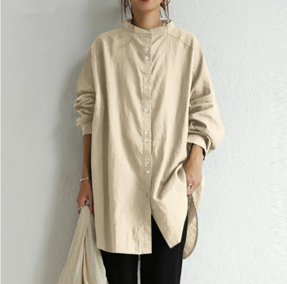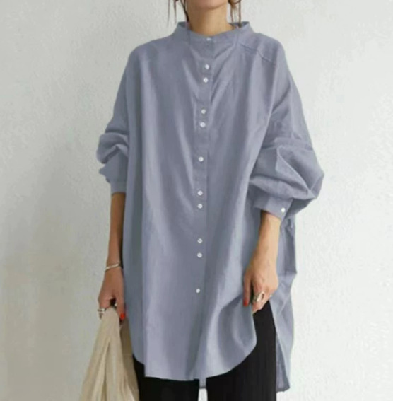 2025 가을과 겨울 빈티지 칼라 싱글 브레스트 긴팔 셔츠 캐주얼 루즈 솔리드 컬러 코튼 및 리넨베이스 셔츠 여성용 6 색스토어 가기