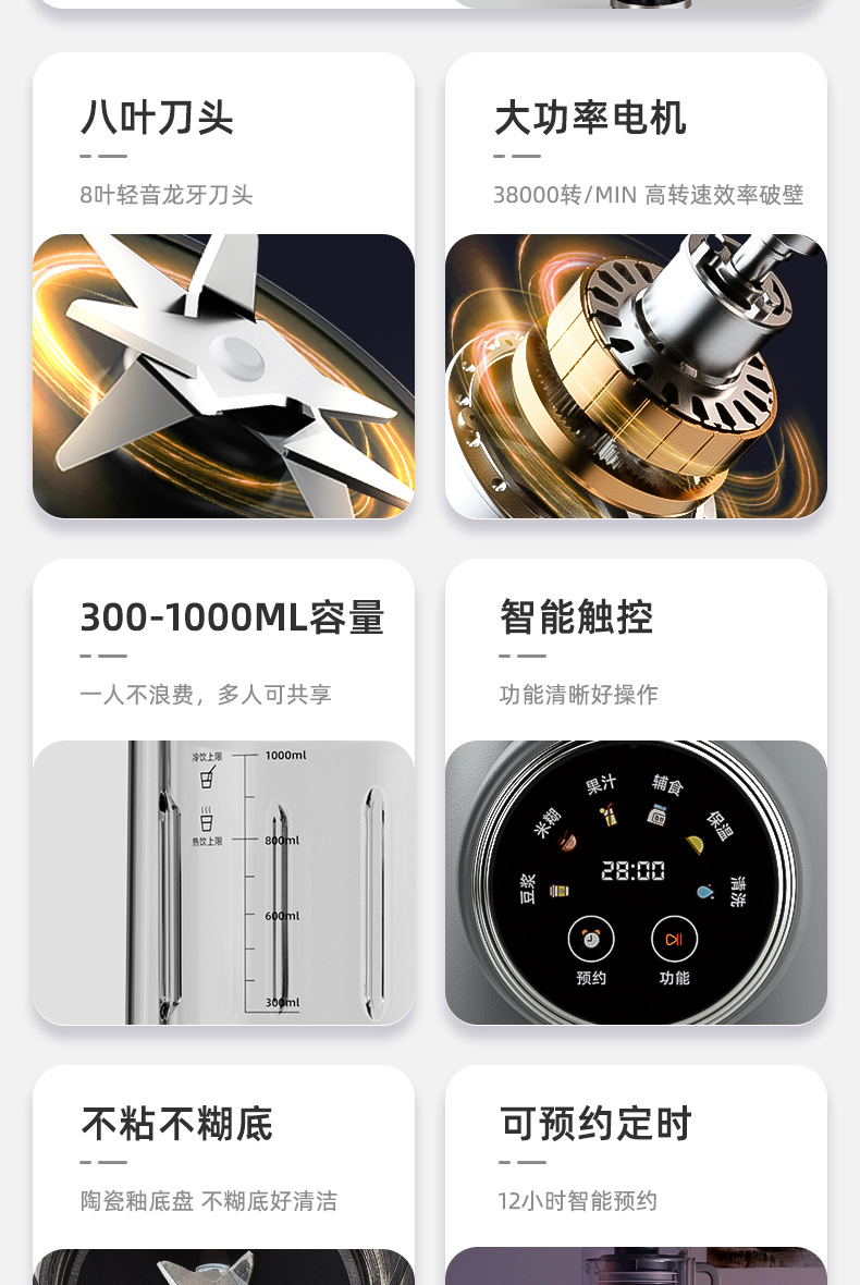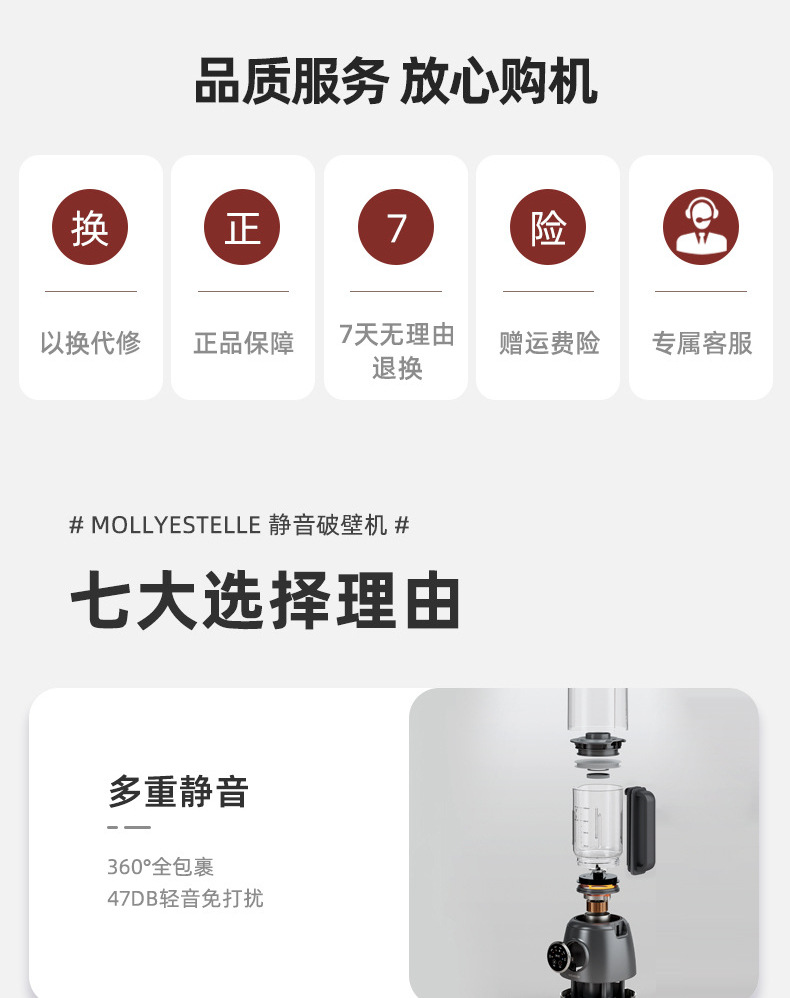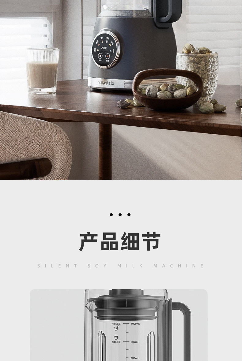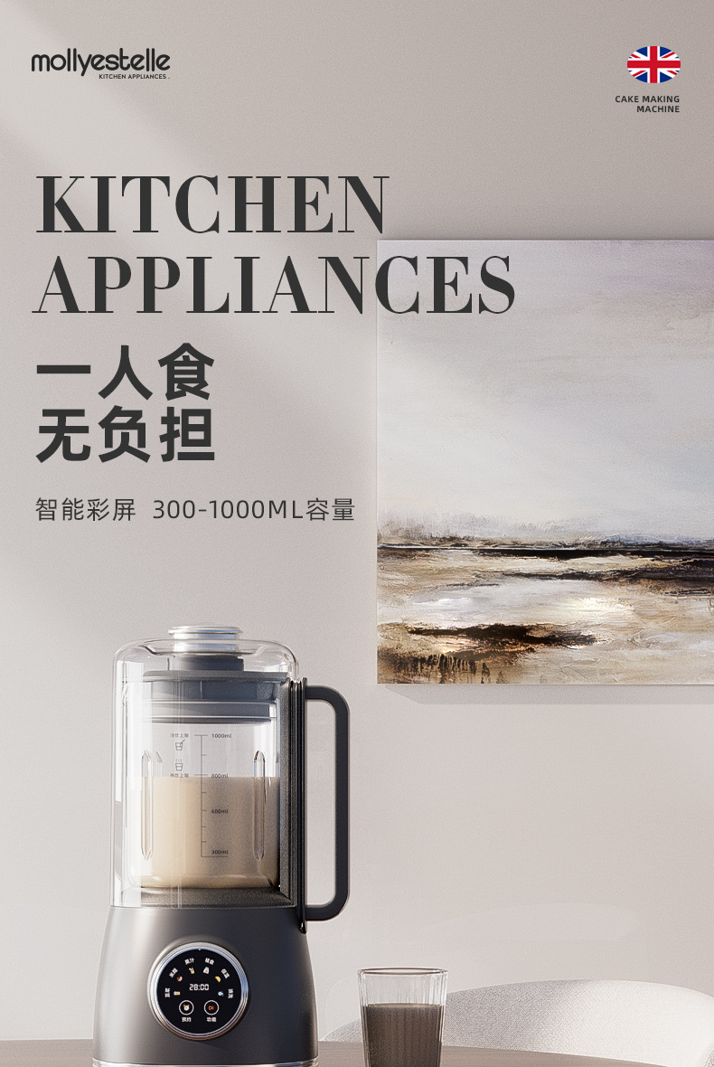Mollyestelle 벽 파괴 기계 가정용 두유 기계 방음 커버 라이트 사운드 곡물 조리 기계 공식 플래그십