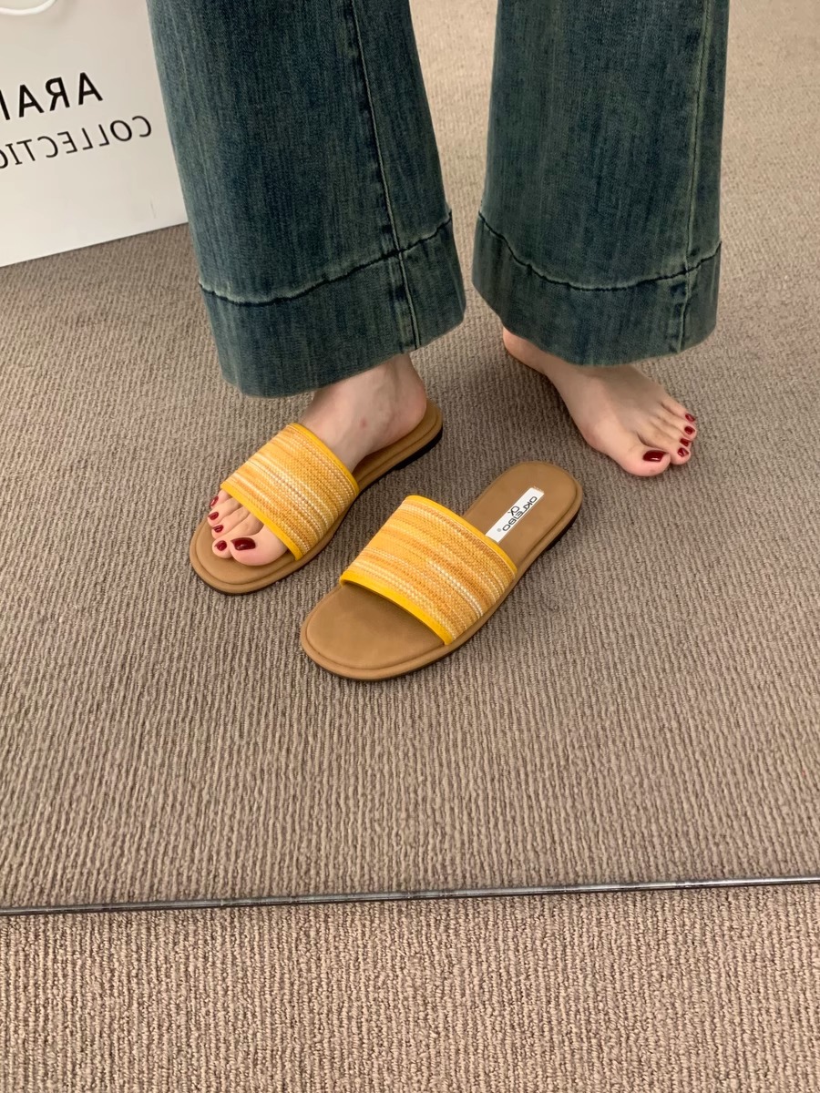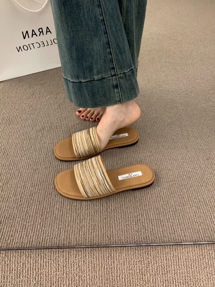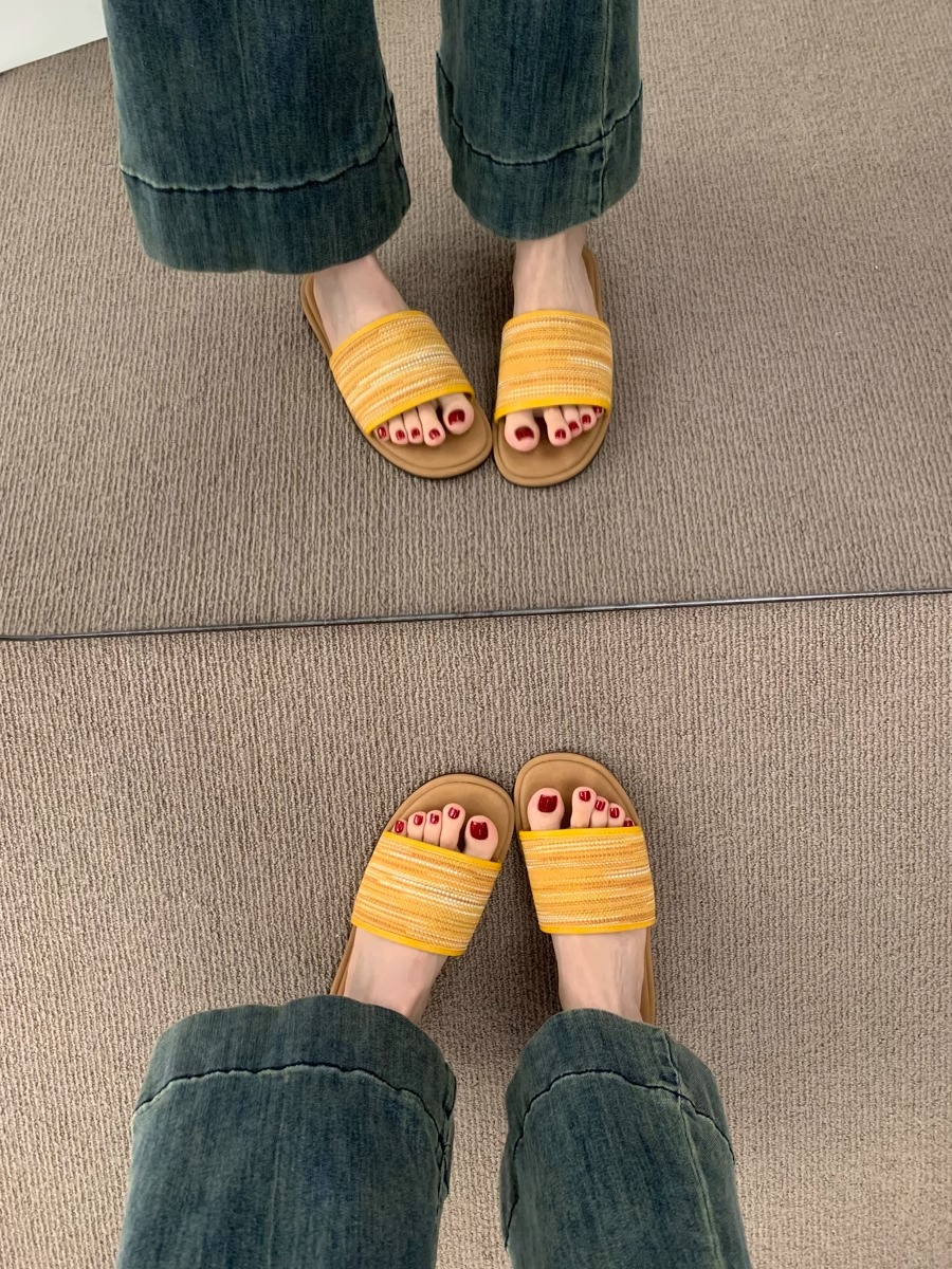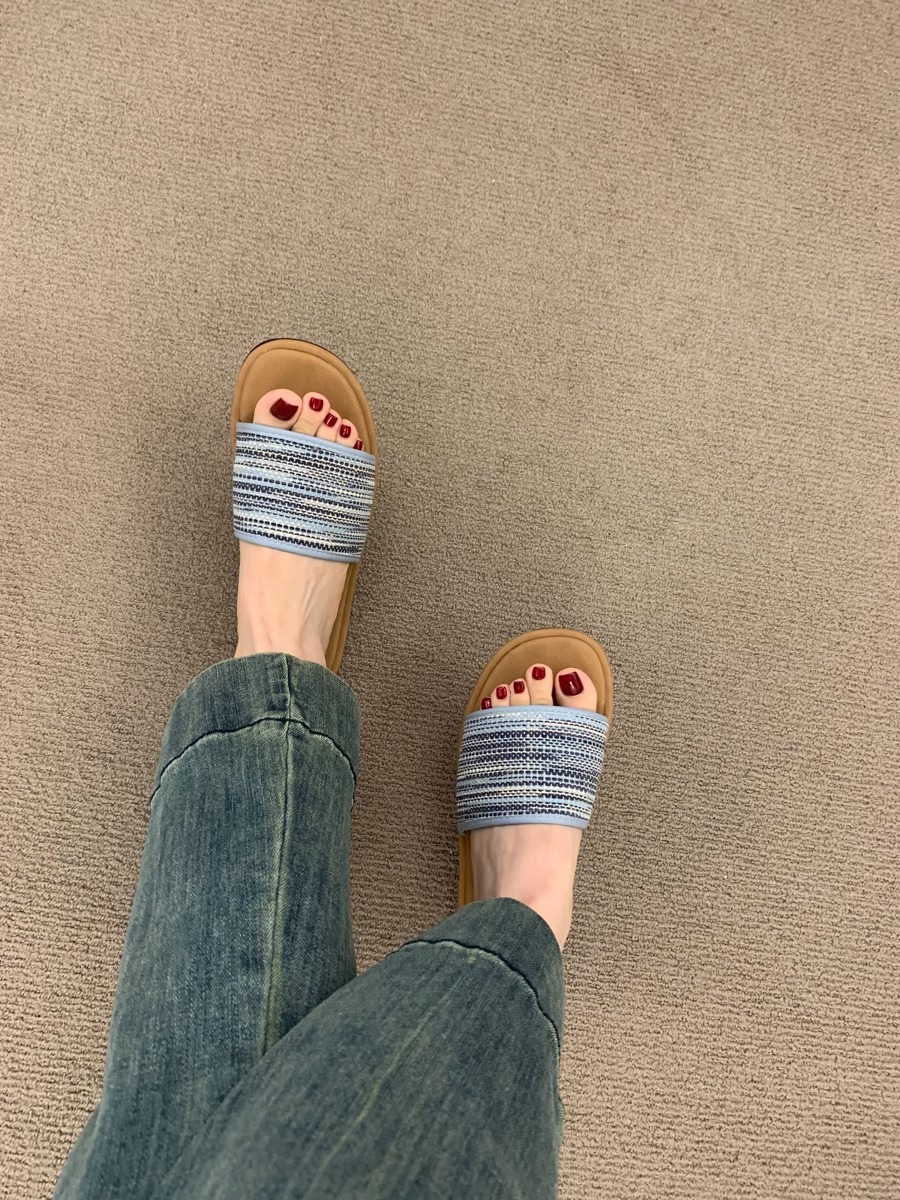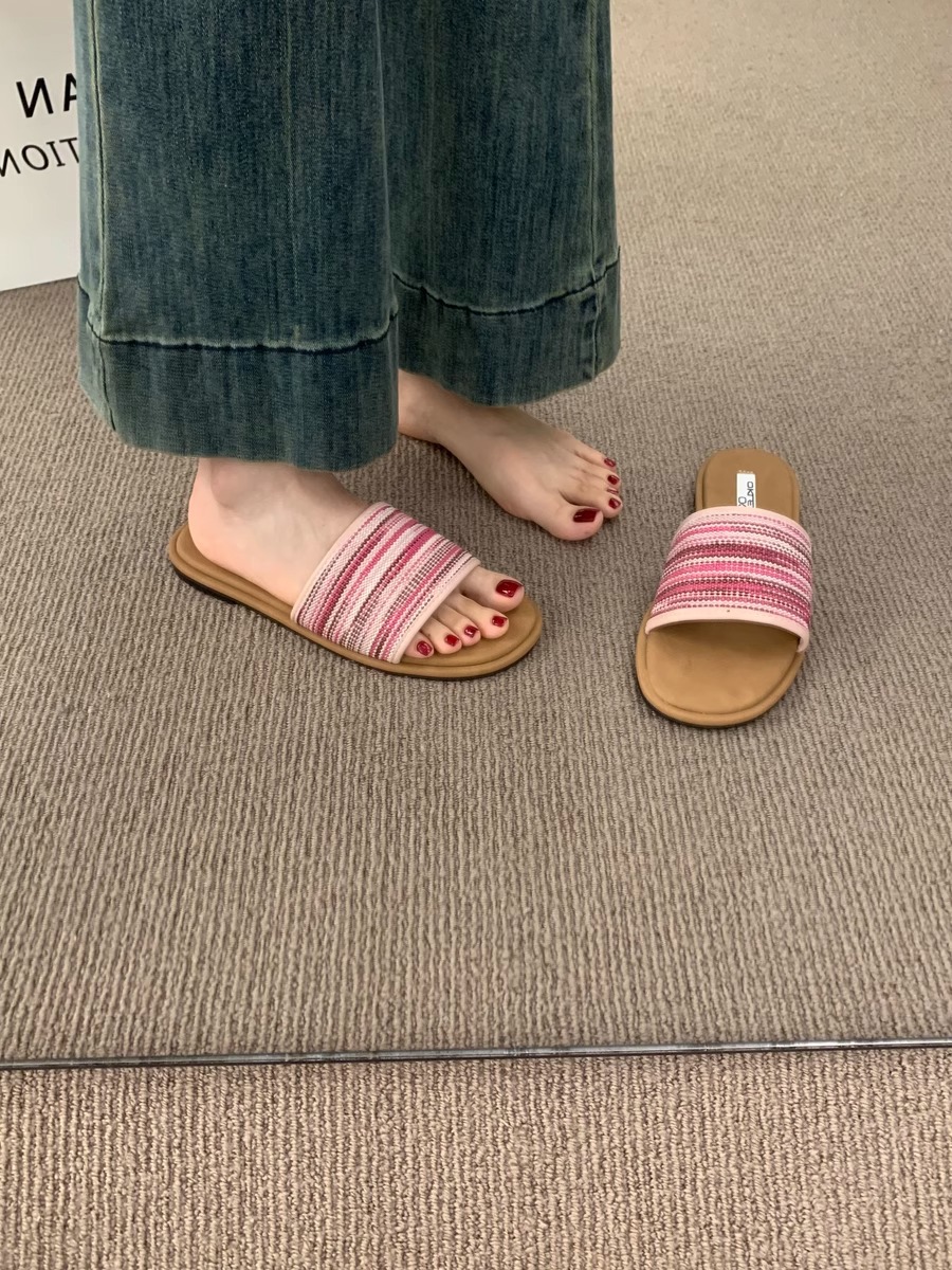 캘리포니아 비치~여성용 휴가용 우븐 컬러 블록 크로스 스트랩 샌들, 여성용 아우터용 부드러운 밑창의 다용도 비치 슬리퍼스토어 가기