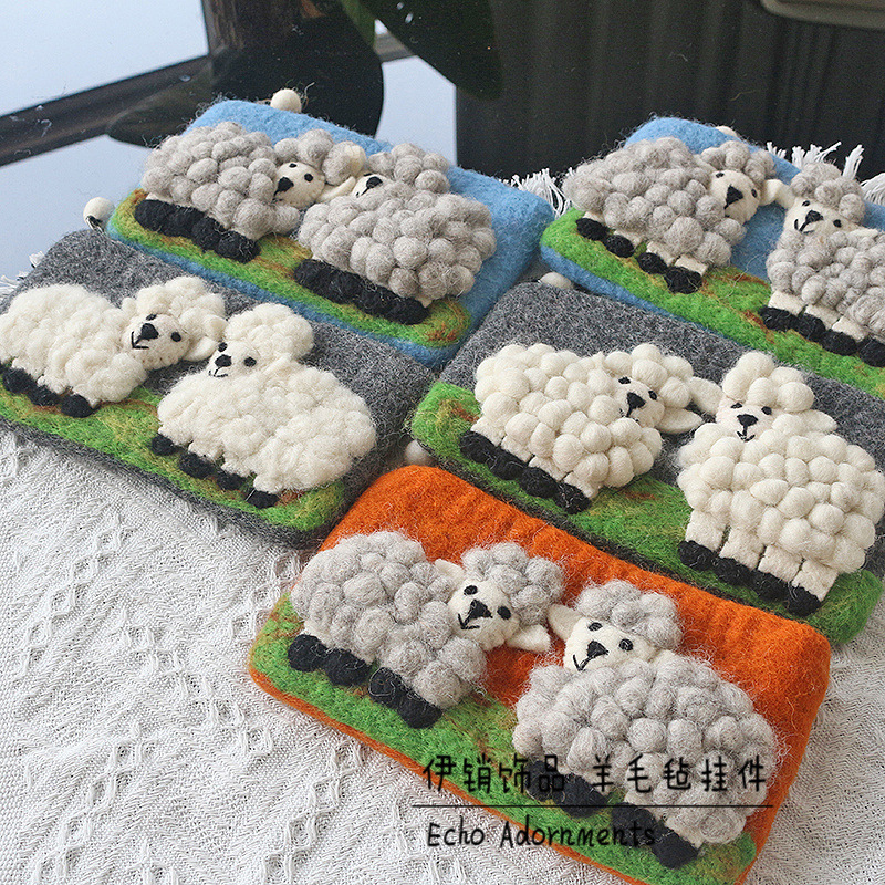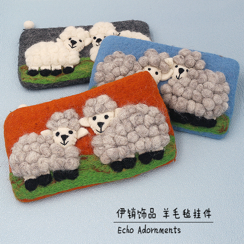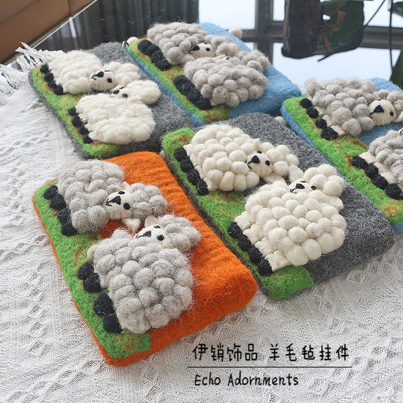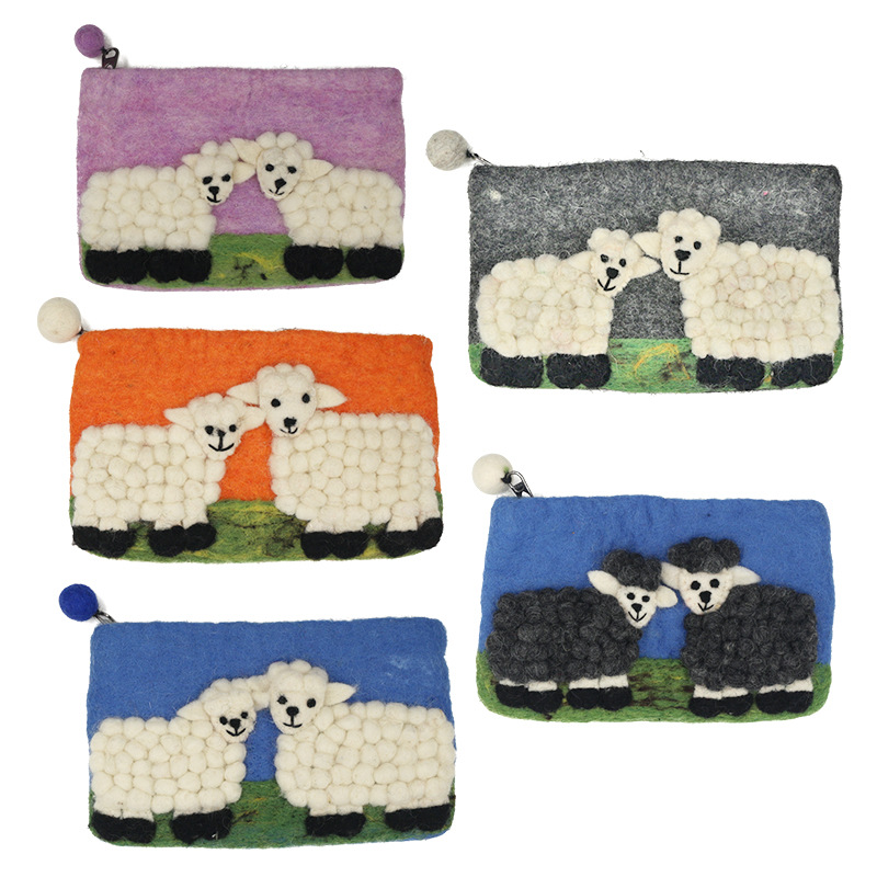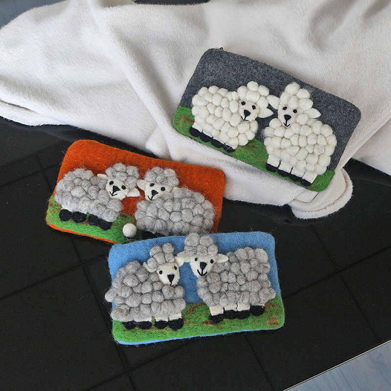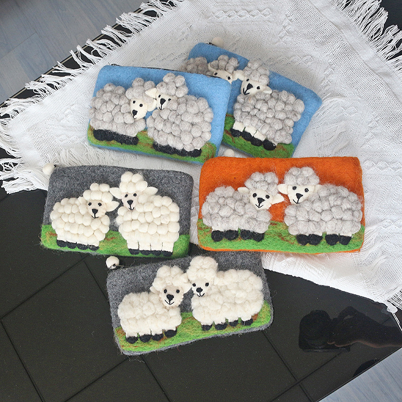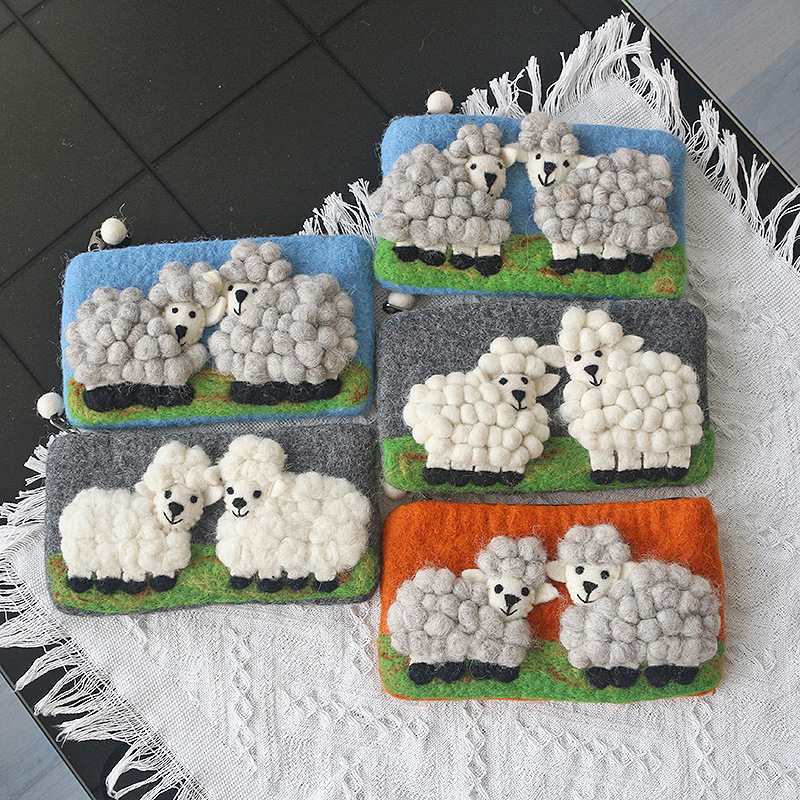 즉시 배송 가능한 네팔 양모 펠트 가방, 신선하고 아름다운 휴대폰 가방, 카드 지갑, 만화 양 모양 수제 펠트 동전 지갑스토어 가기