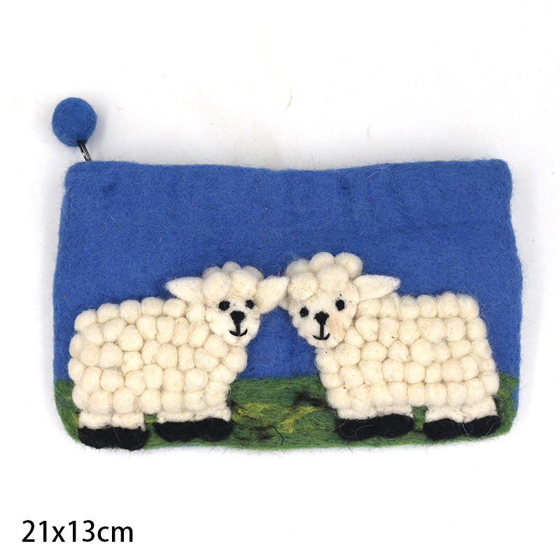 즉시 배송 가능한 네팔 양모 펠트 가방, 신선하고 아름다운 휴대폰 가방, 카드 지갑, 만화 양 모양 수제 펠트 동전 지갑