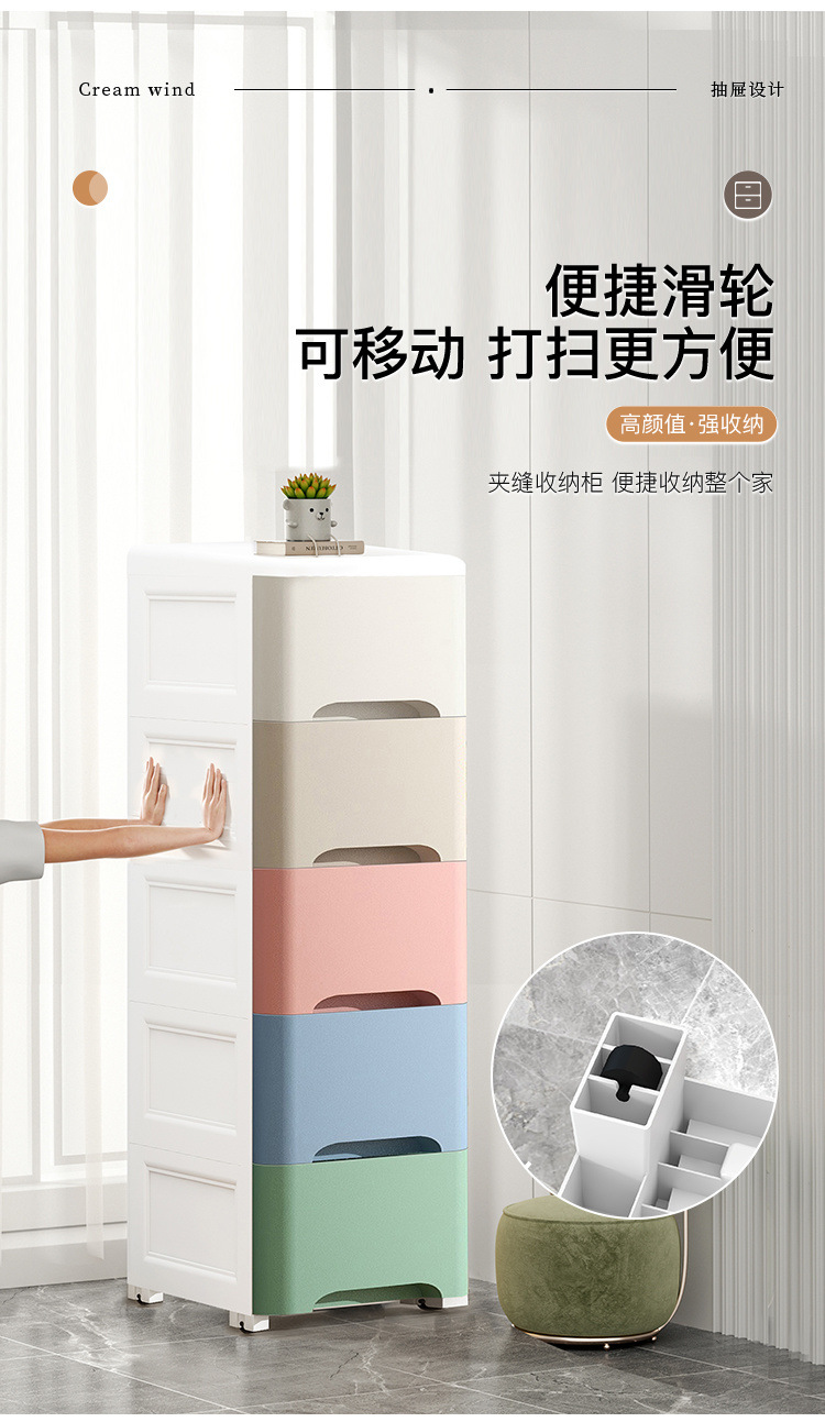 // 틈새 수납 캐비닛 서랍형 욕실 수납 캐비닛 플라스틱 좁은 틈새 주방 다층 수납 선반