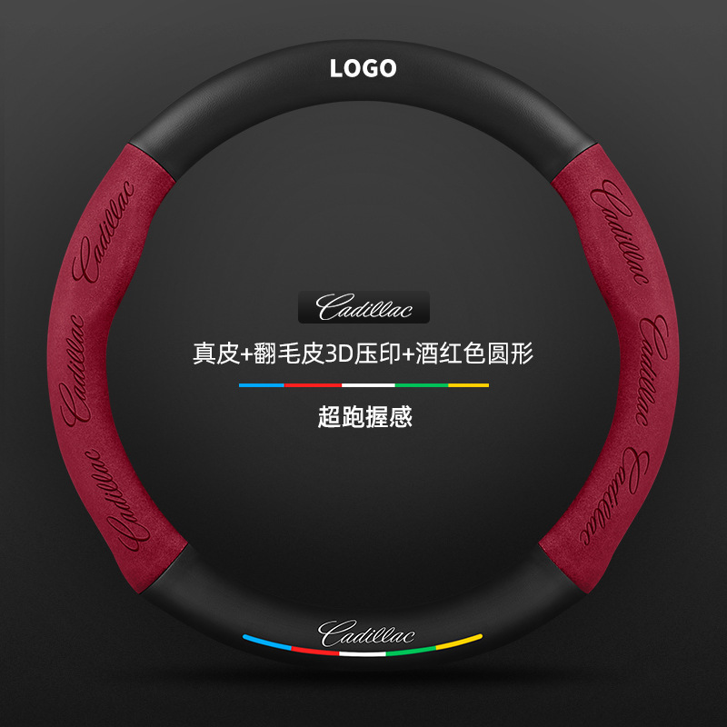 • 천연가죽 스웨이드 3D 엠보싱 버건디 라운드 캐딜락 로고