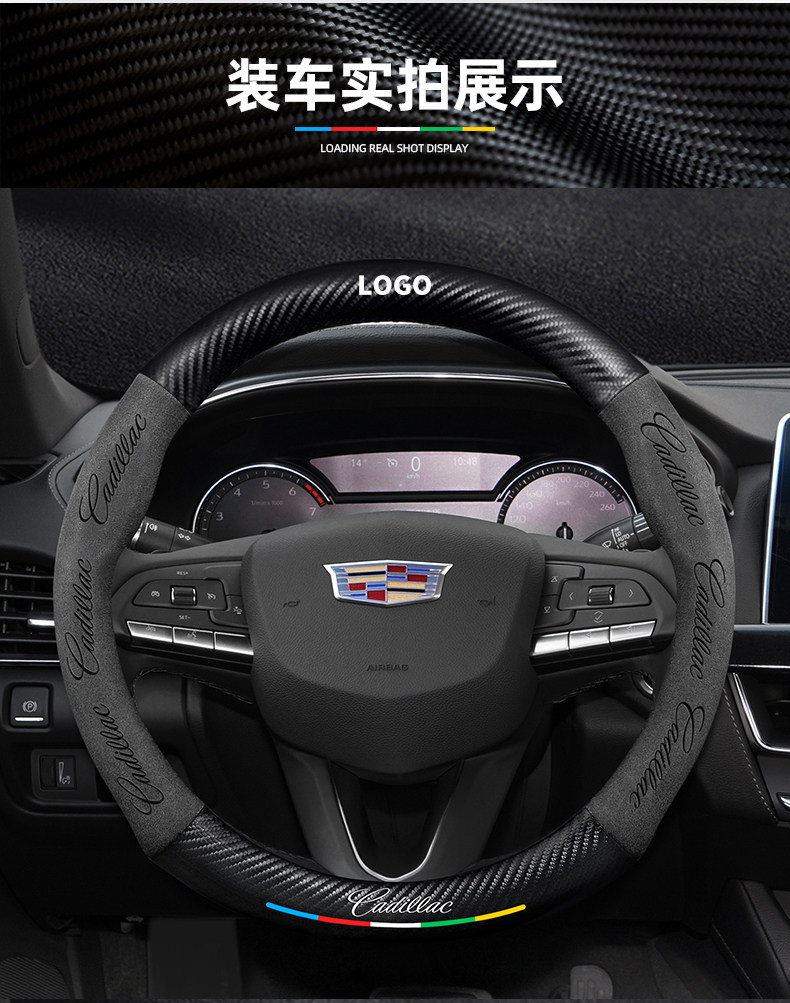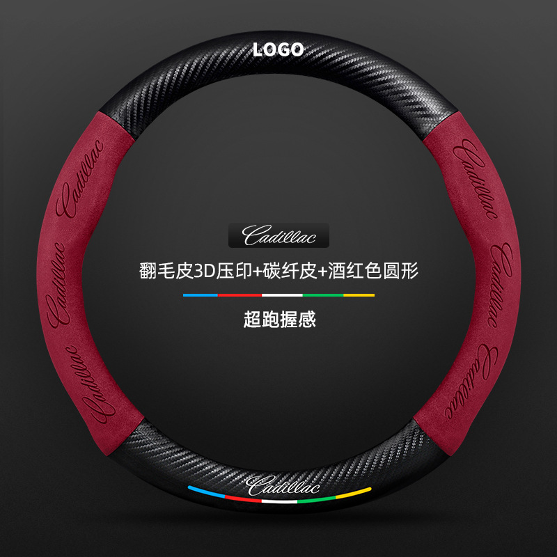 캐딜락 CT5 스티어링 휠 커버에 적합 20-24 모델 스웨이드 가죽 올 시즌 범용 가죽 탄소 섬유 핸들 바 커버