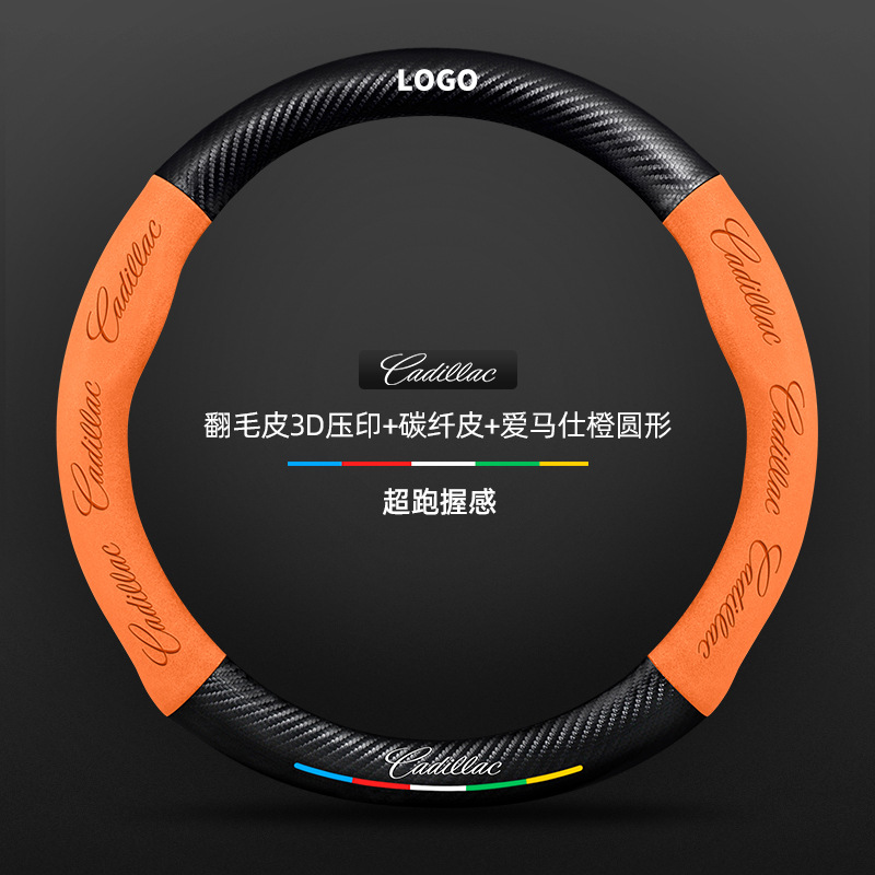 • 스웨이드 3D 양각 탄소 섬유 가죽 Hermès 오렌지 라운드 캐딜락 로고