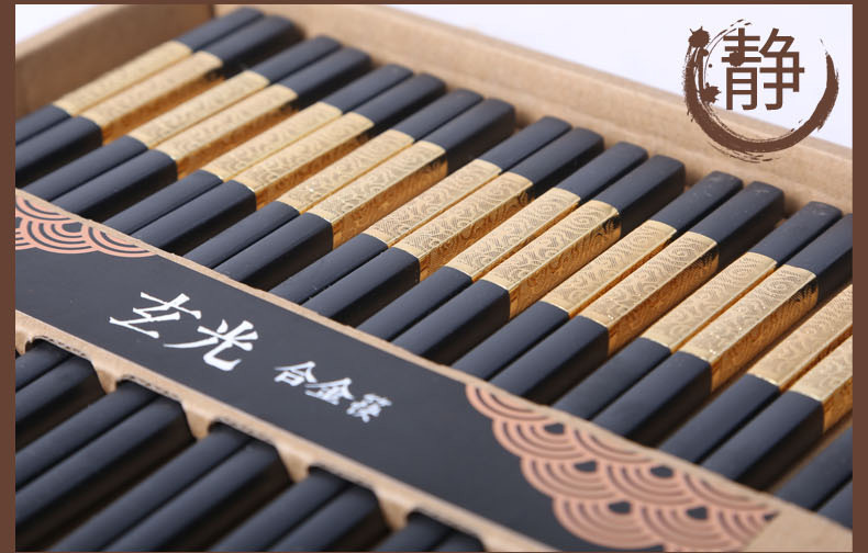 정품 Zhang Xiaoquan 합금 젓가락 금속 양각 크리 에이 티브 세트 일본 젓가락 10 쌍 선물 팩 공식 플래그십 스토어스토어 가기