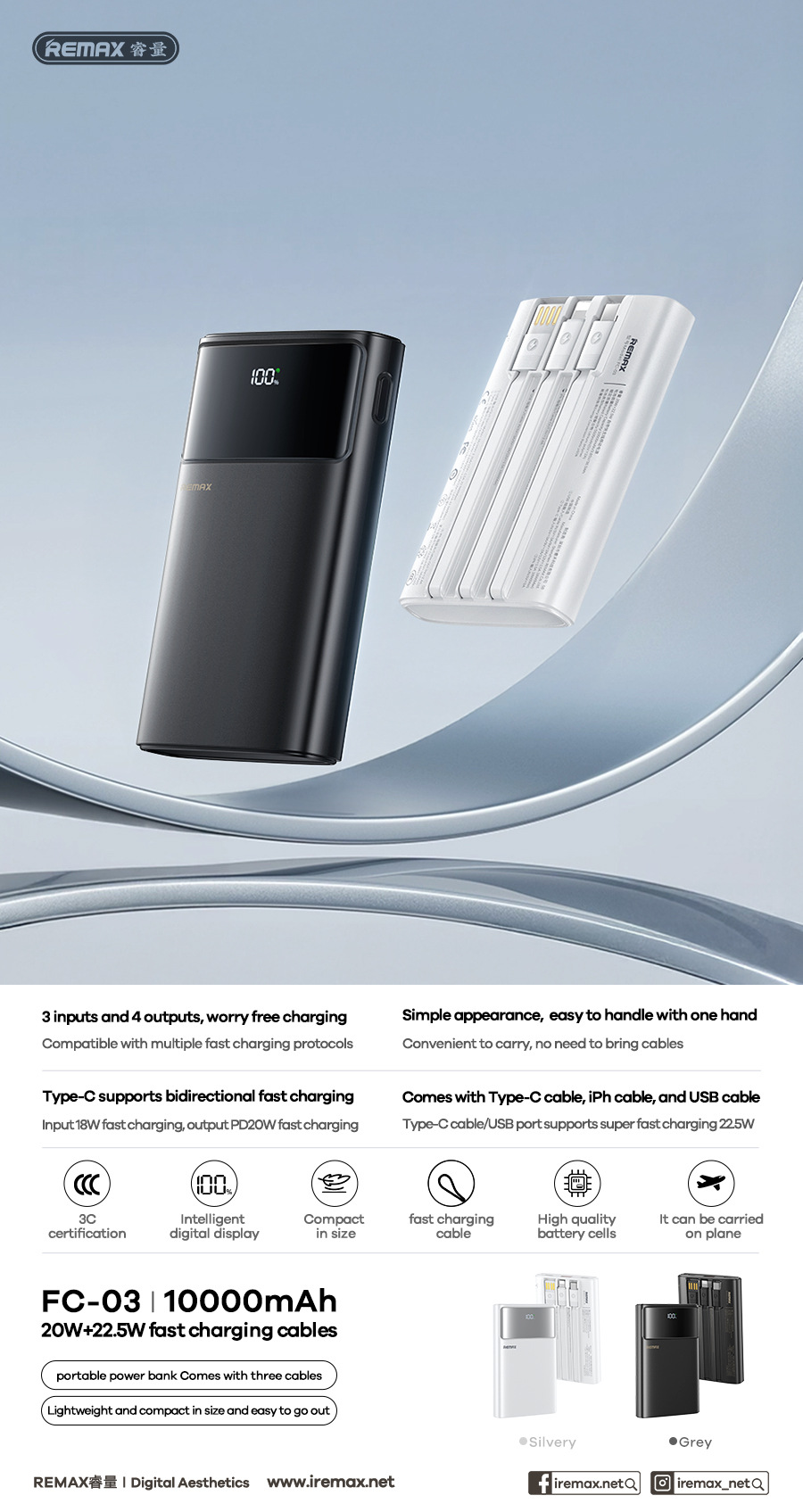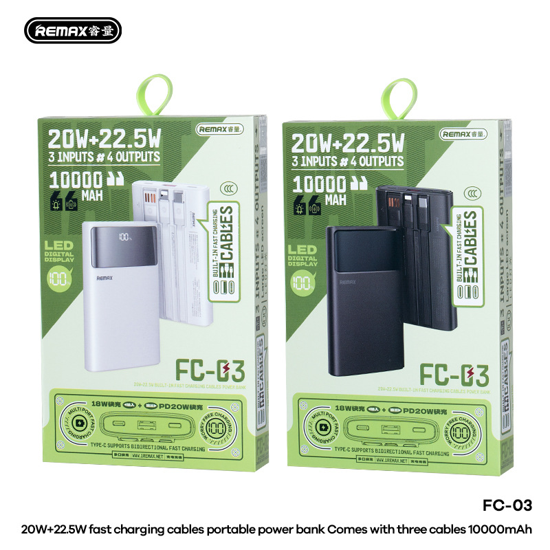 Remax 신제품은 3 선 충전 보물 10000 mA 22.5W 빠른 충전 모바일 전원 충전 보물과 함께 제공됩니다.스토어 가기