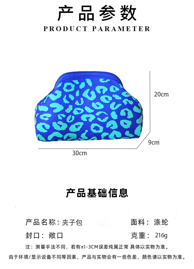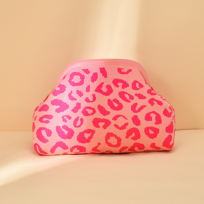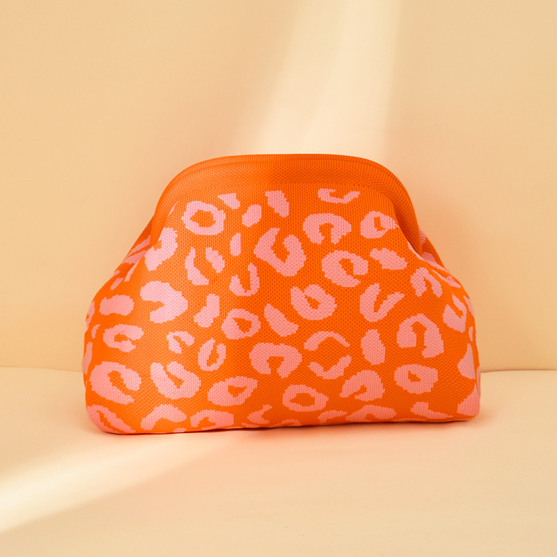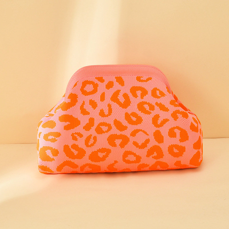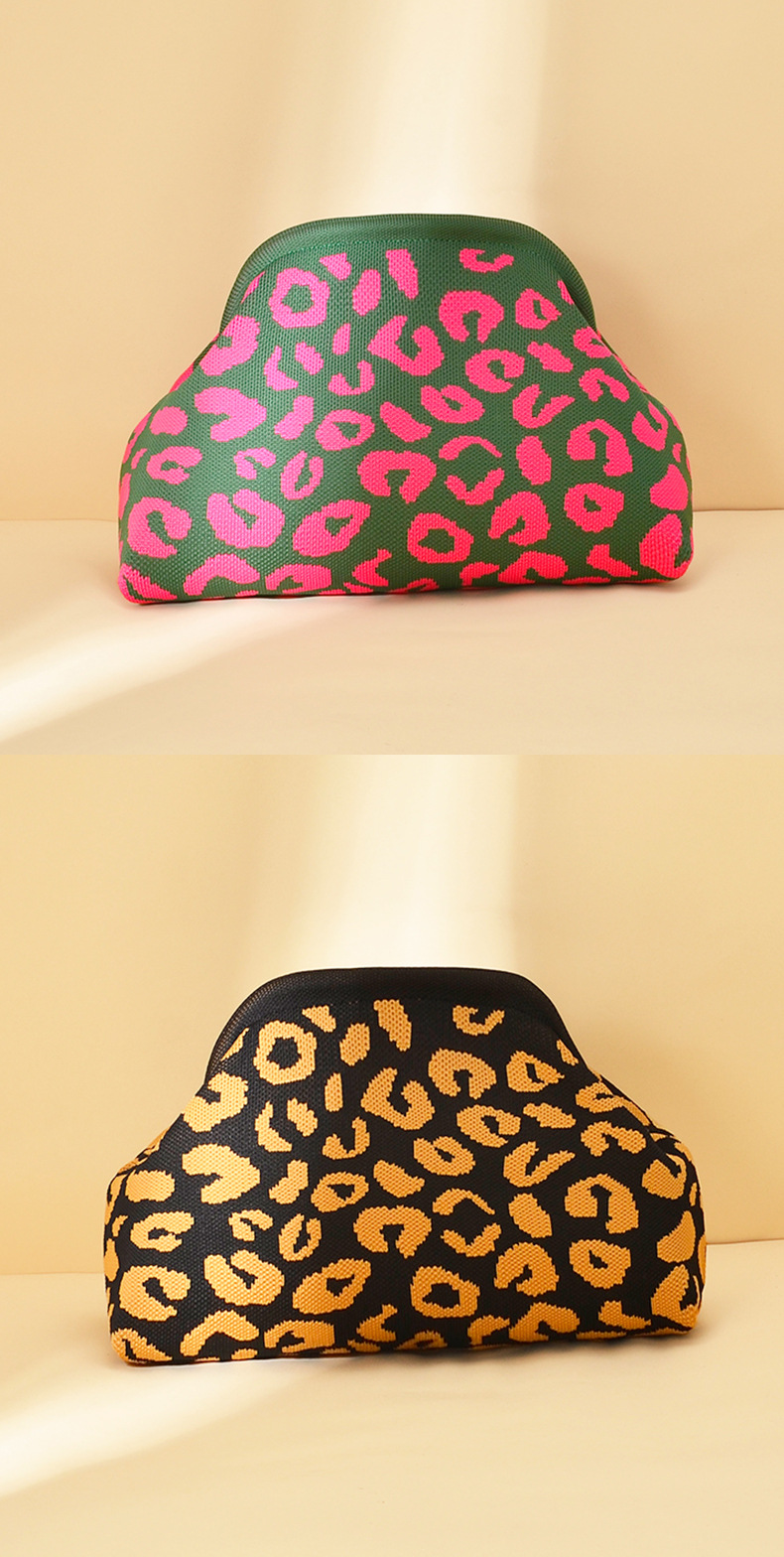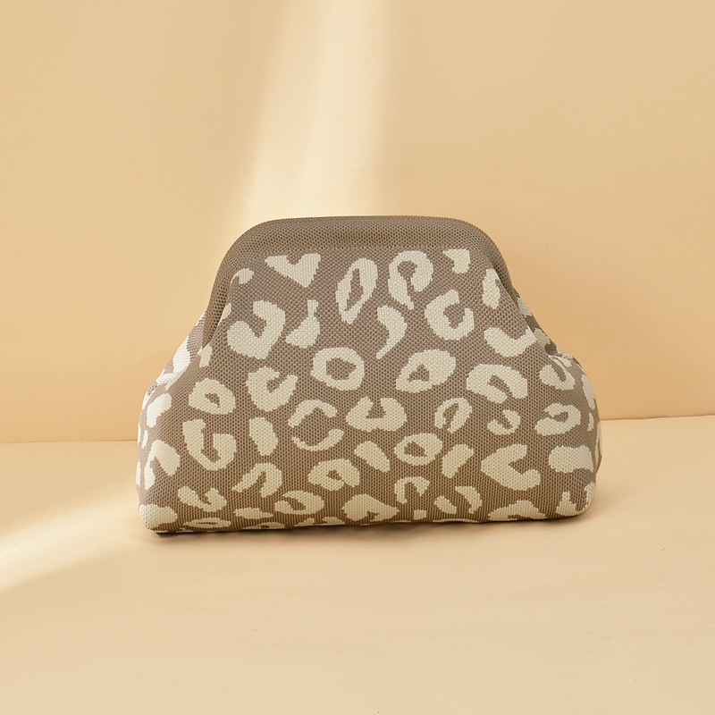 국경을 넘는 인기 레오파드 프린트 클러치백, 고급스러운 배색 니트 클립백, 대용량 패셔너블하고 다용도로 활용 가능한 화장품 가방