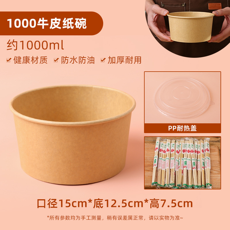 일회용 인스턴트 국수 그릇 고온 내성 식품 등급 도시락 밥 그릇 세탁 무료 크래프트 종이 포장 상자 그릇 젓가락 세트 가정 소용돌이스토어 가기