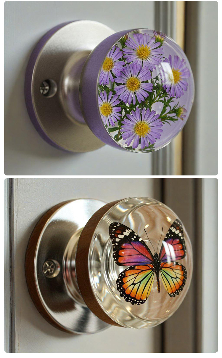 독특한 장식 문 손잡이 독특한 장식 문 손잡이 수지 임베디드 공예