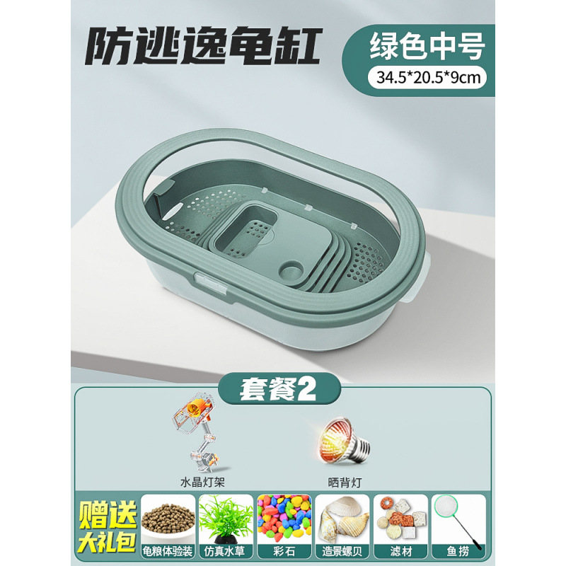 • 배수 거북 분지 중간 녹색 + 필터 + 일광욕 램프 + 먹이 선물 팩