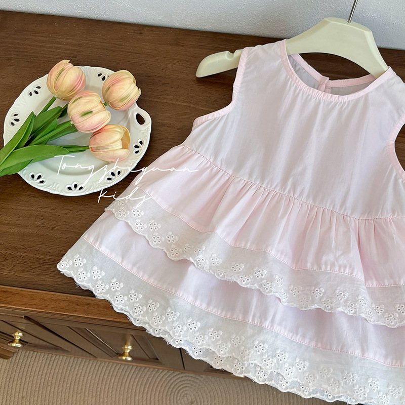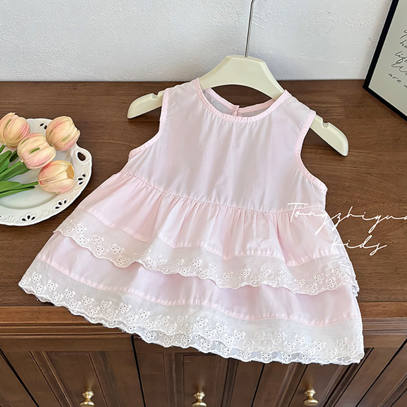 여자 여름 새로운 핑크 레이스 조끼 아기 소녀 캐주얼 유행 품질 아동 의류 유행스토어 가기
