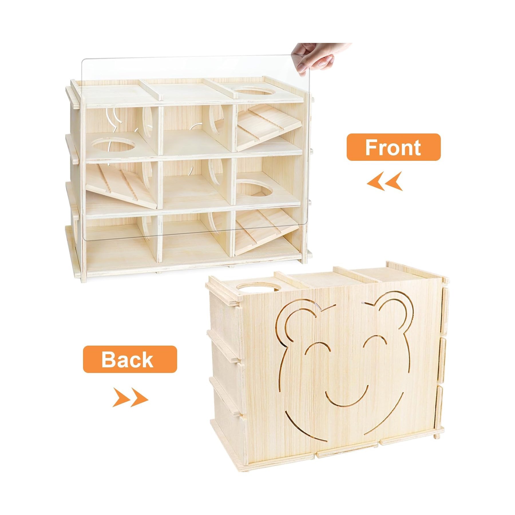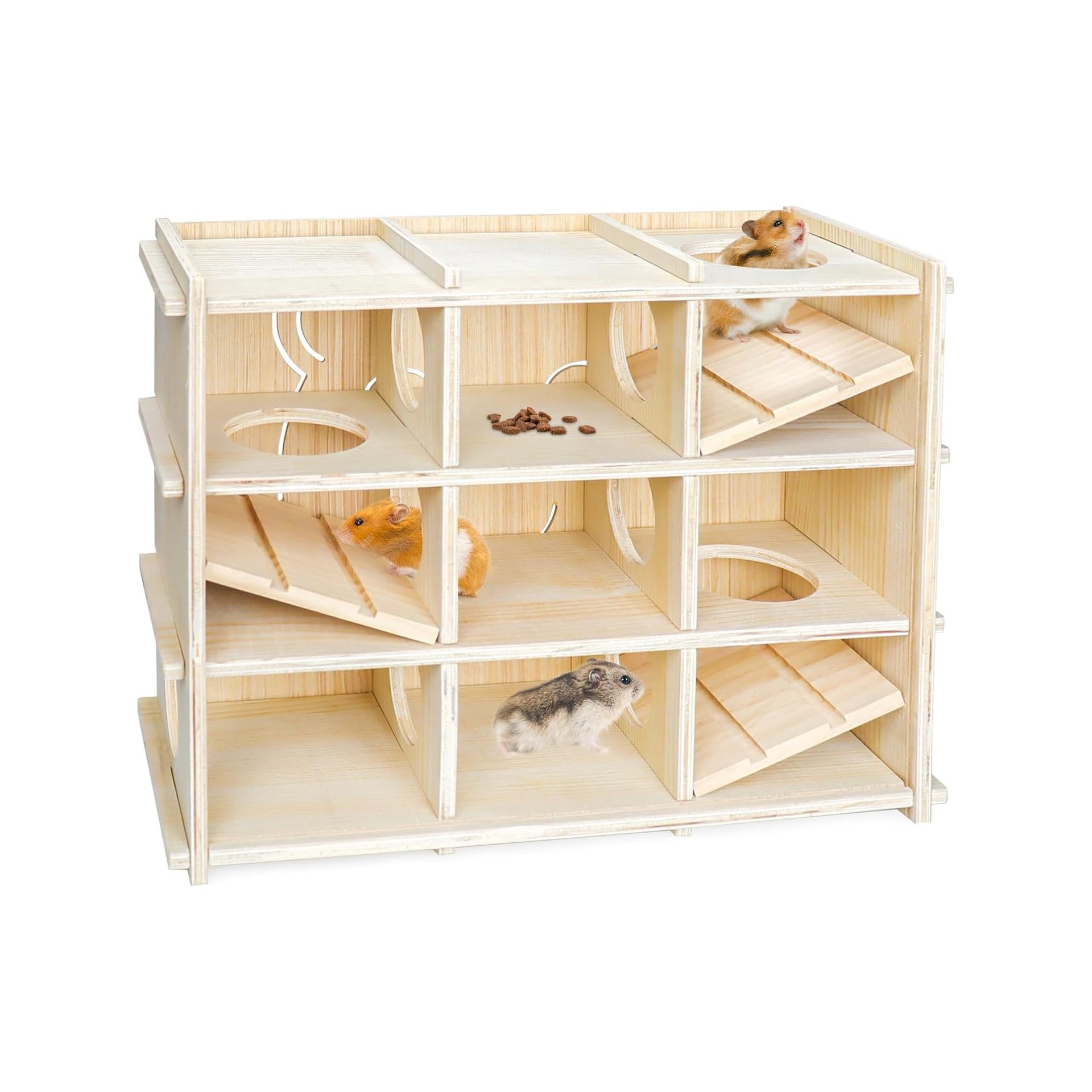 나무 햄스터 케이지 햄스터 장난감 미로 모험 상자 다중 공간 투명 햄스터 하우스 터널 포함 소형 애완동물 하우스스토어 가기