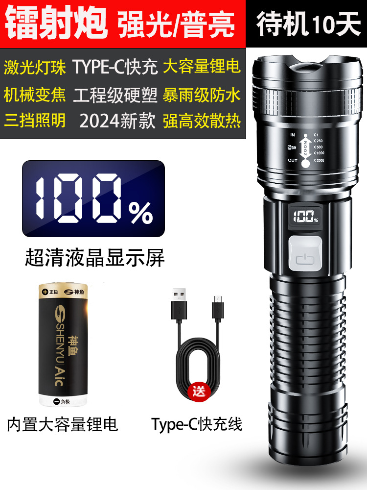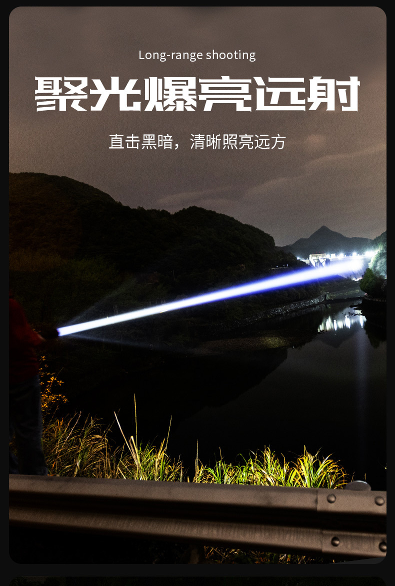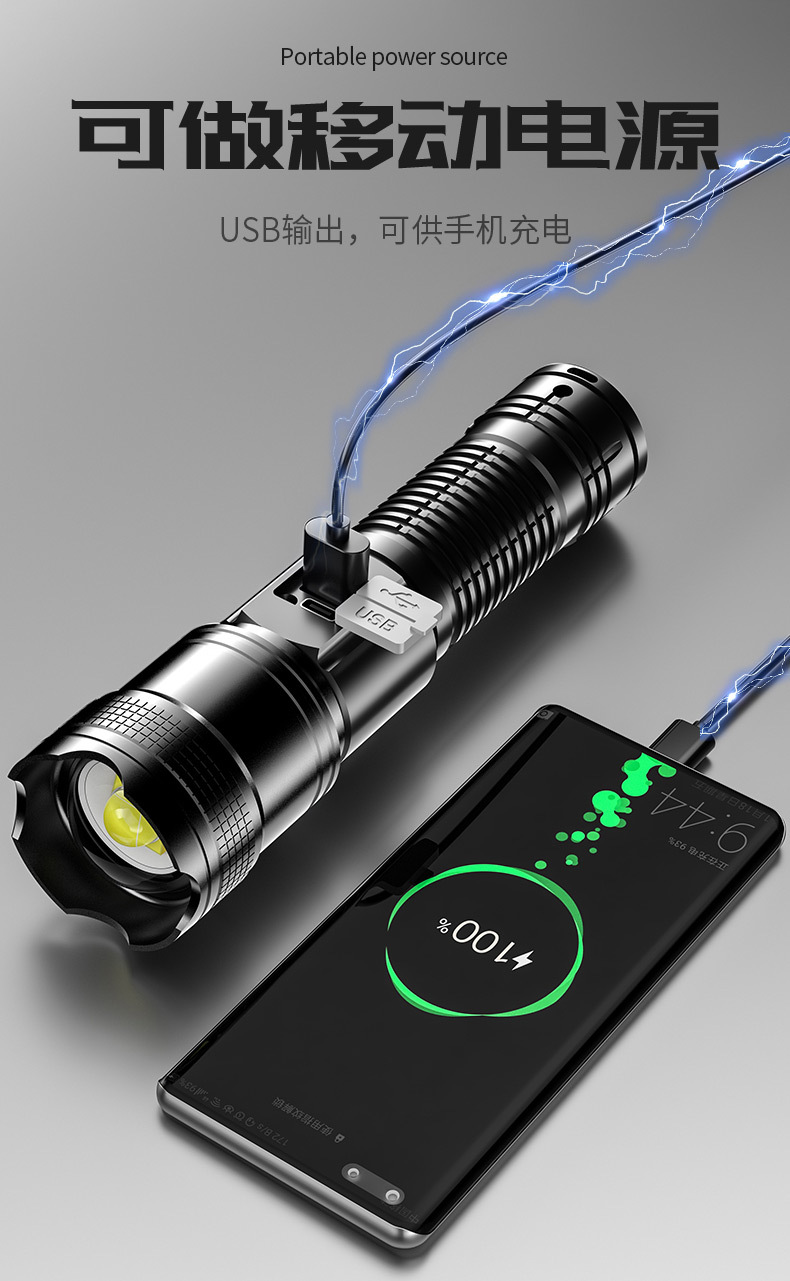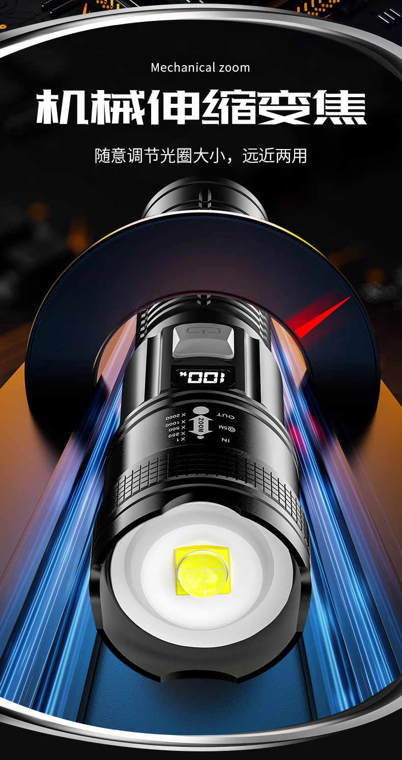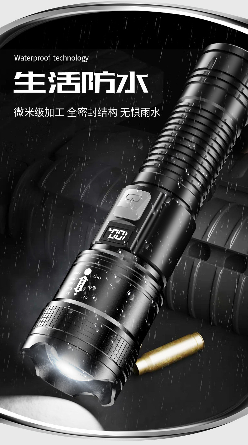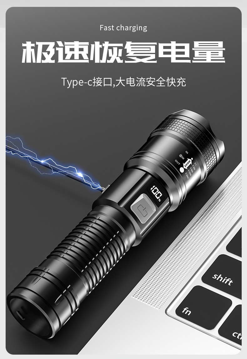 손전등 강한 빛 충전 긴 내구성 가정용 야외 드롭 방지 줌 스포트라이트 휴대용 슈퍼 브라이트 제논 조명