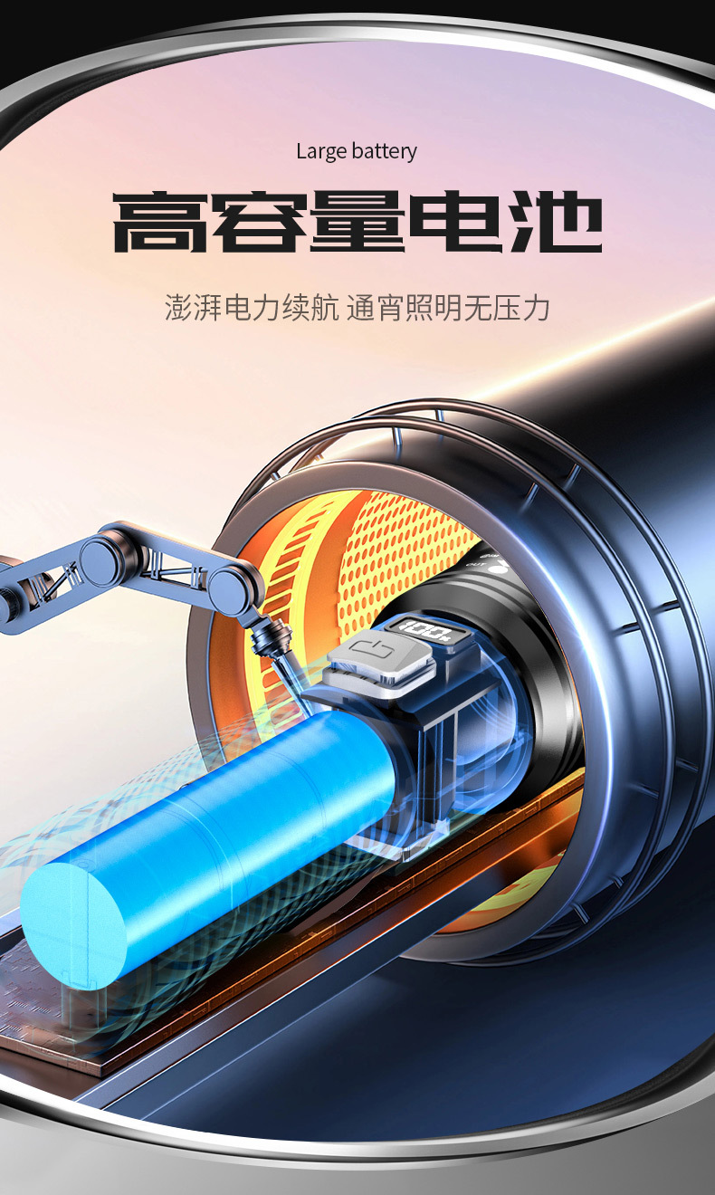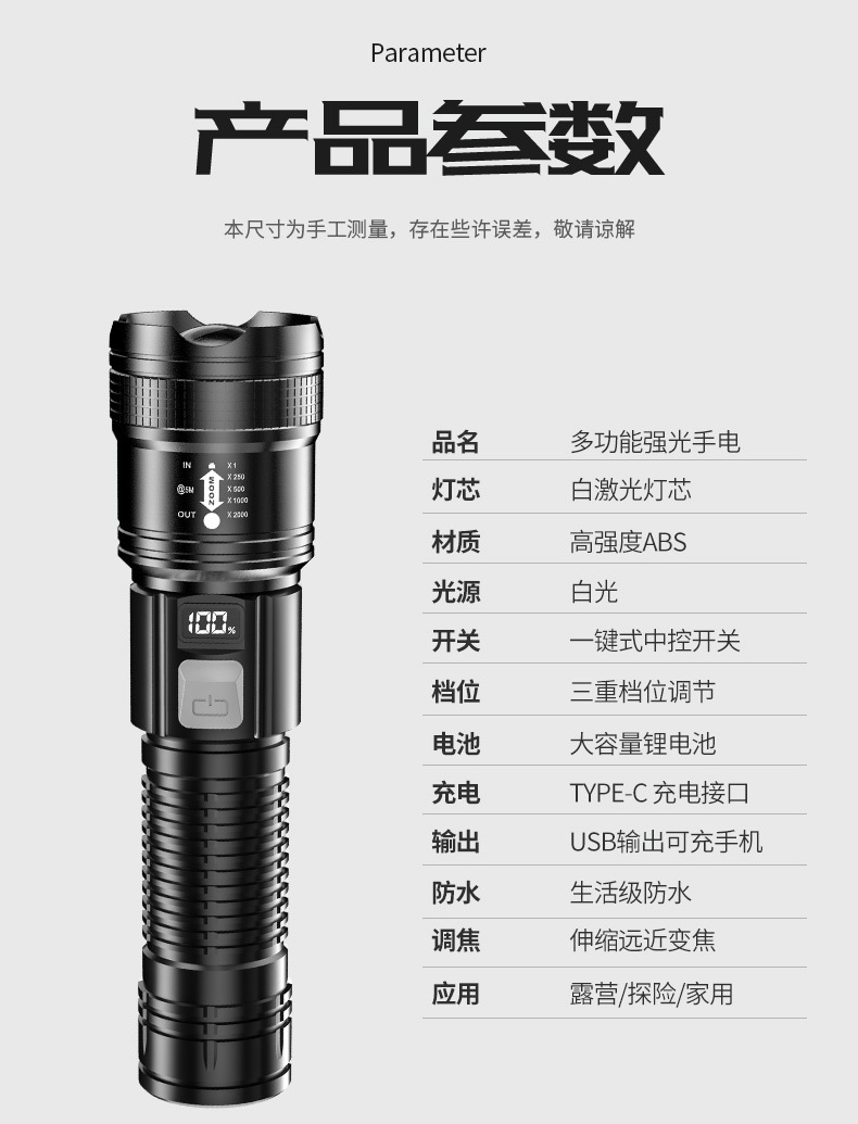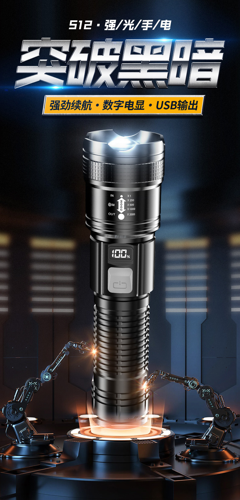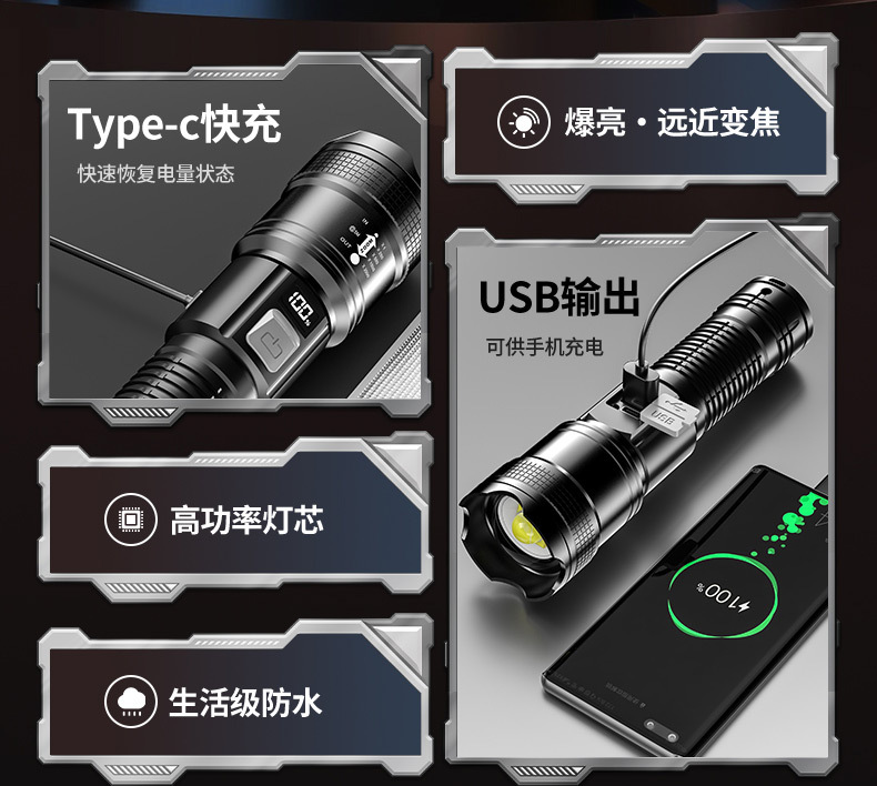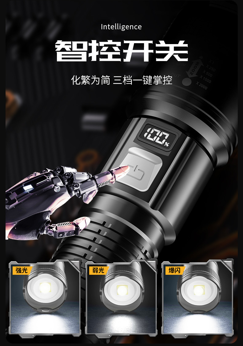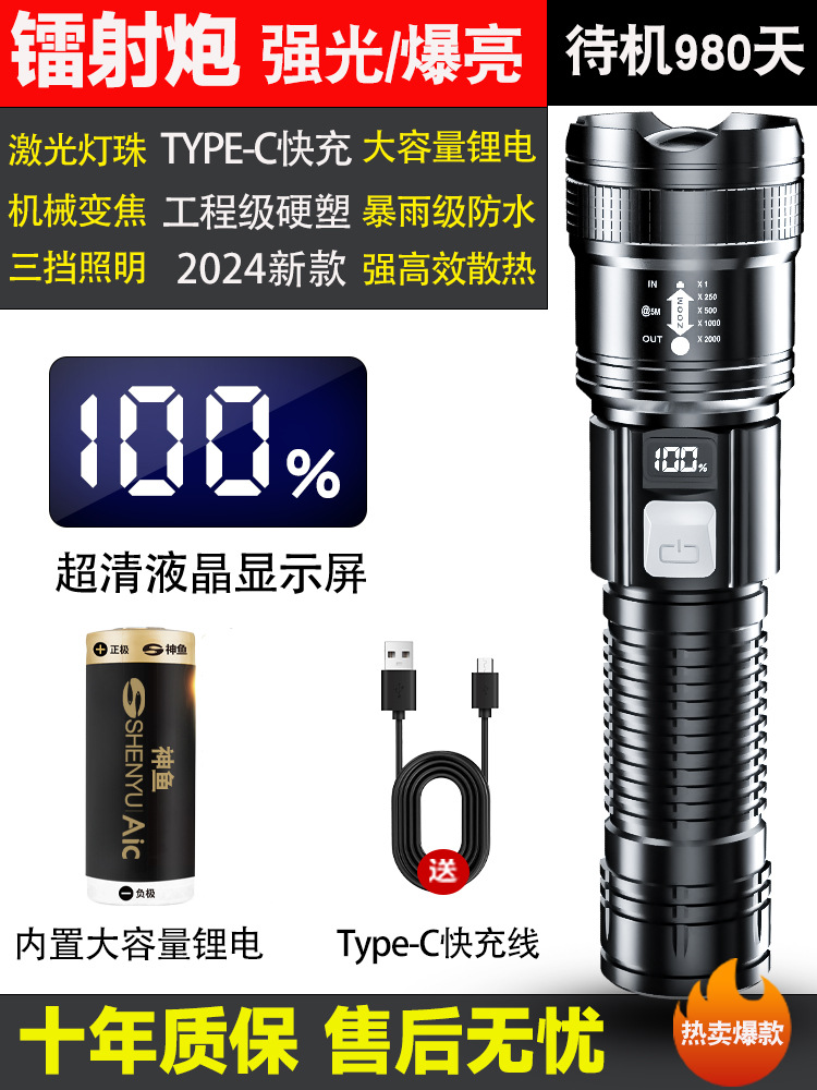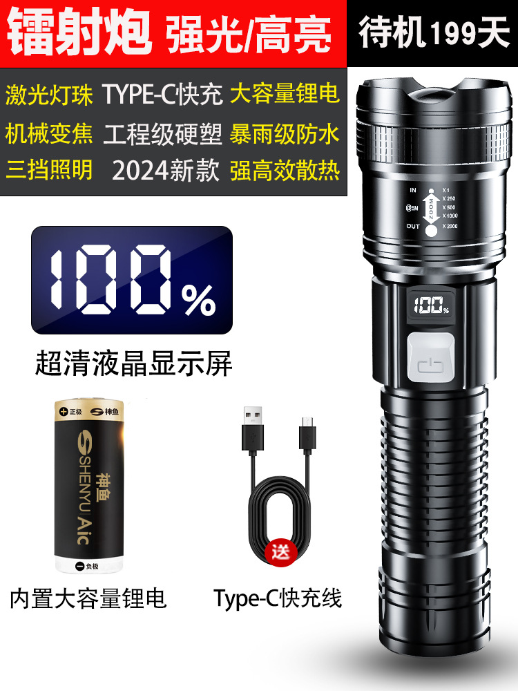 손전등 강한 빛 충전 긴 내구성 가정용 야외 드롭 방지 줌 스포트라이트 휴대용 슈퍼 브라이트 제논 조명
