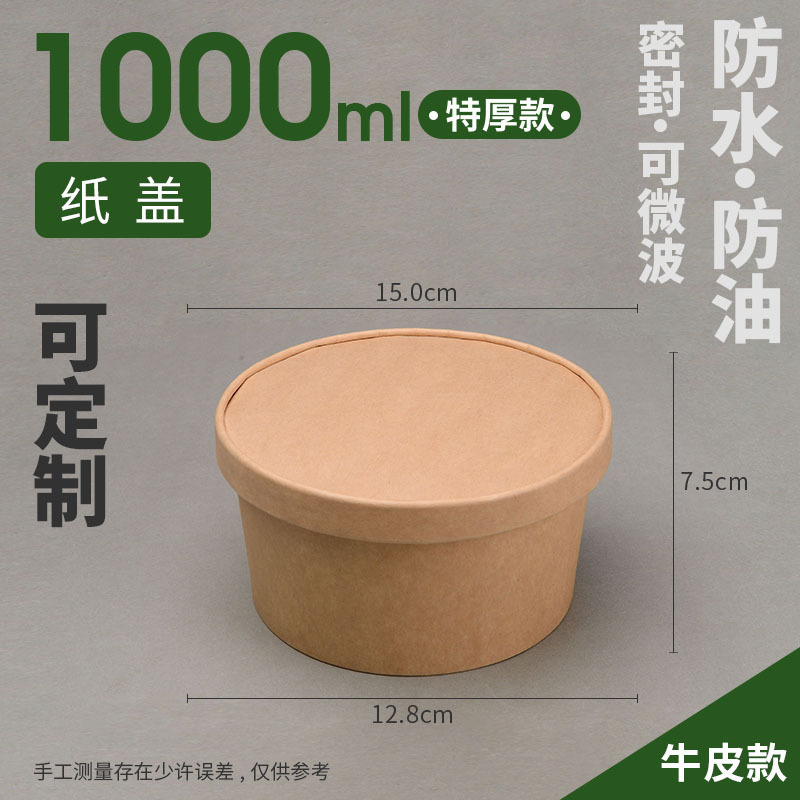 • 1000ml 소가죽 그릇 + 두꺼운 종이 뚜껑 [300세트] 특대형