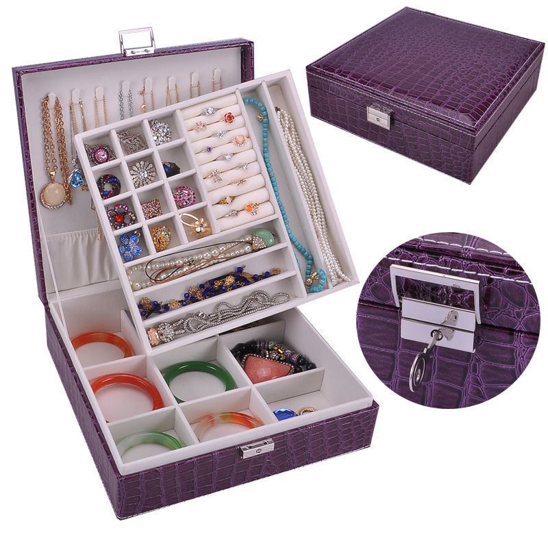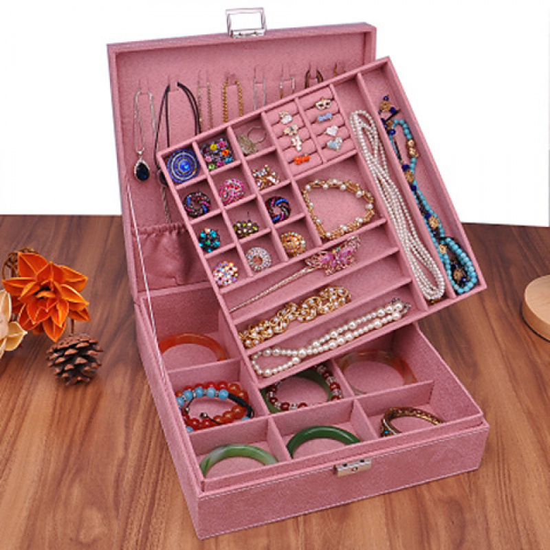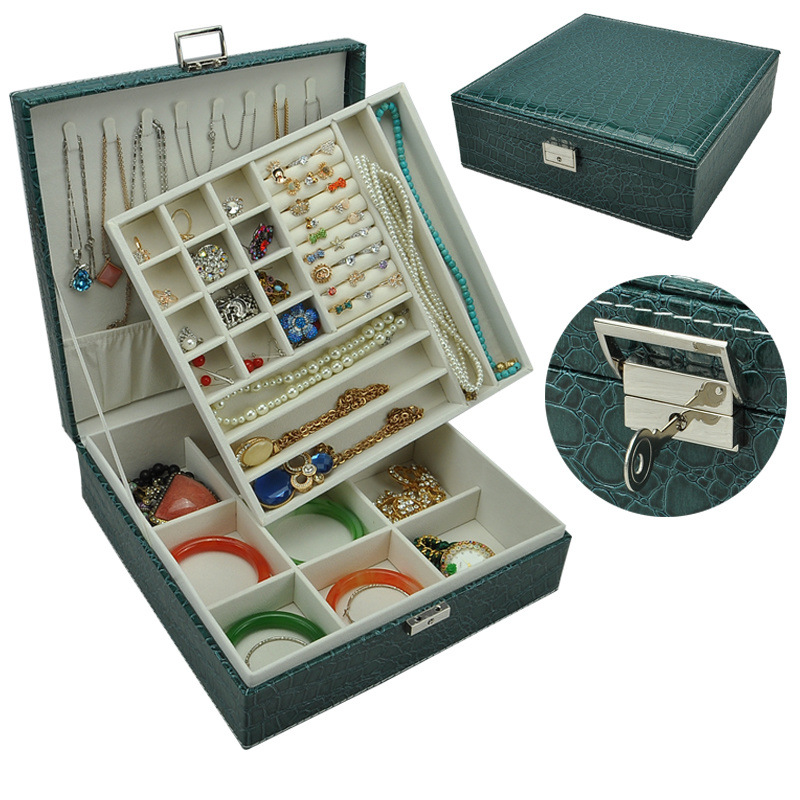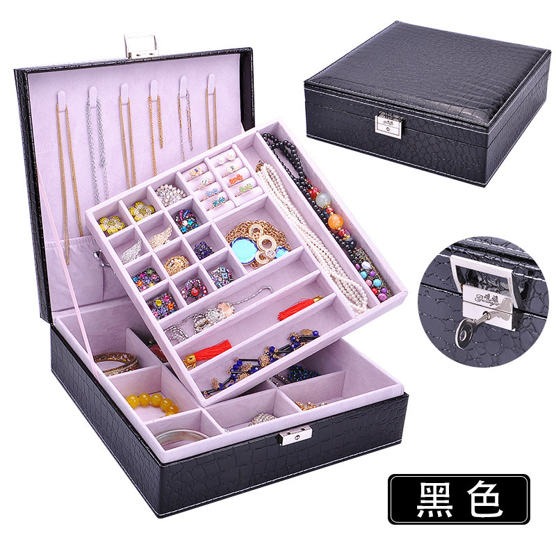 보석 상자 더블 레이어 대용량 복고풍 잠글 수있는 유럽 스타일의 나무 스타일 귀걸이 팔찌 보석 보관 상자 제조 업체스토어 가기