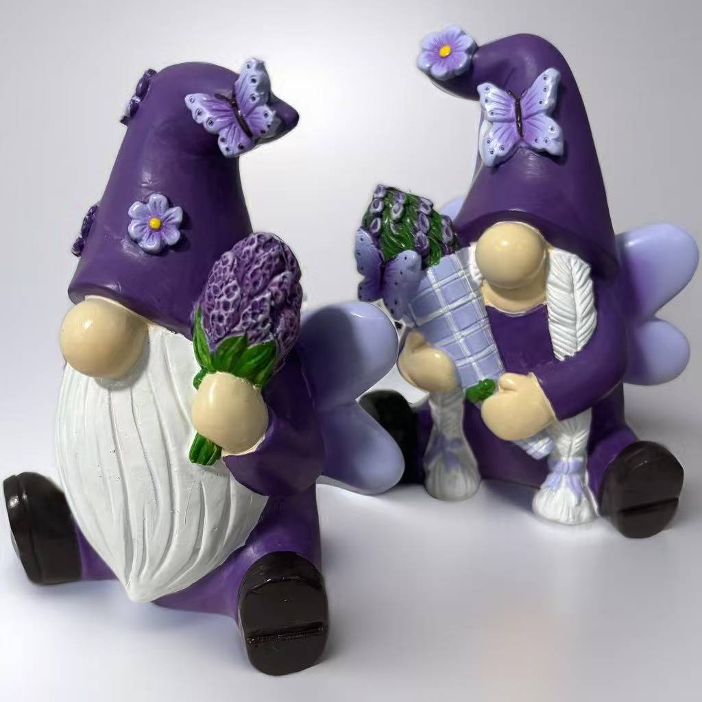 국경 간 신제품 라벤더 난쟁이 커플 수확 축제 작은 동상 홈 오피스 데스크탑 장식품 수지 장식품