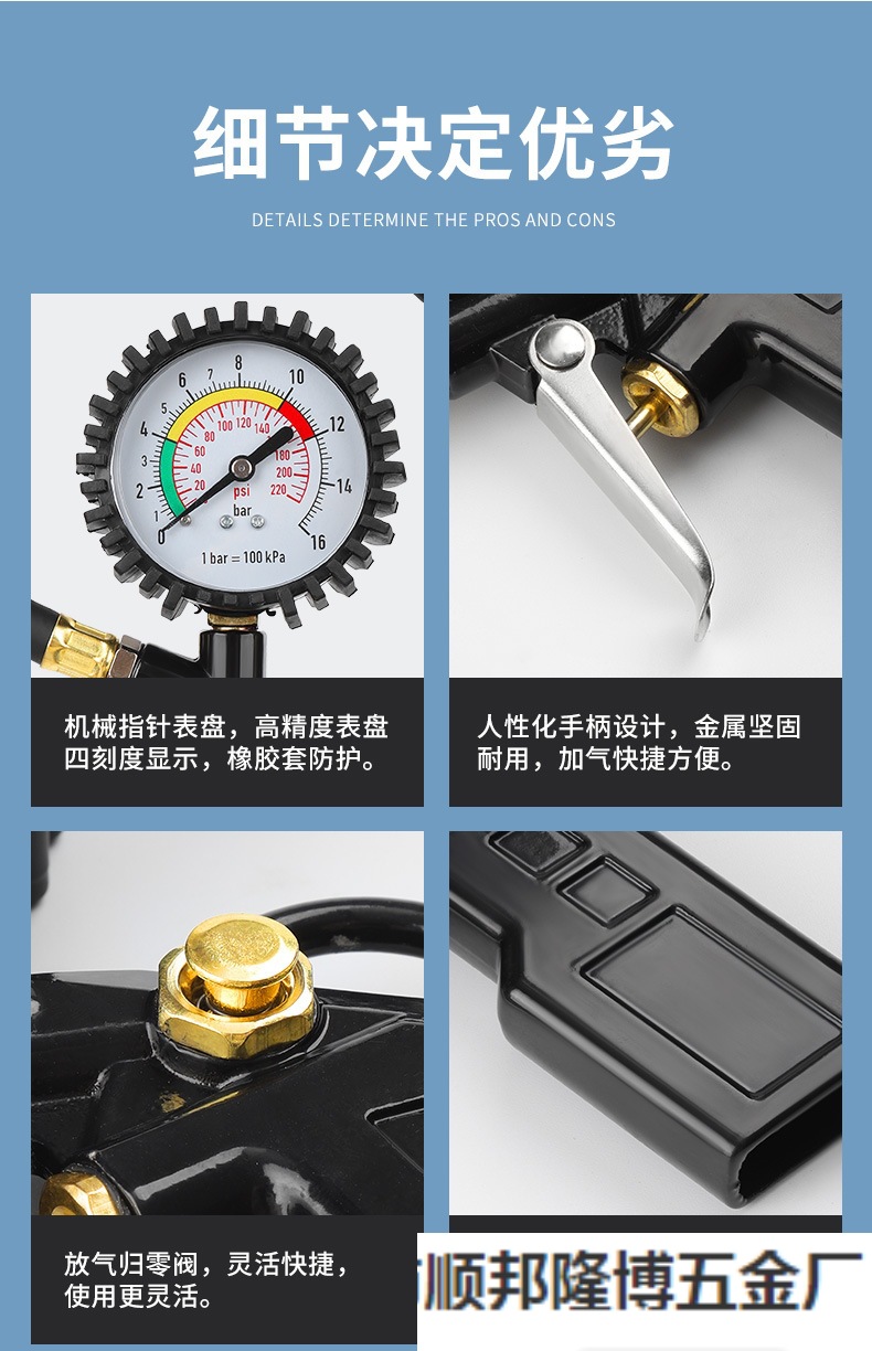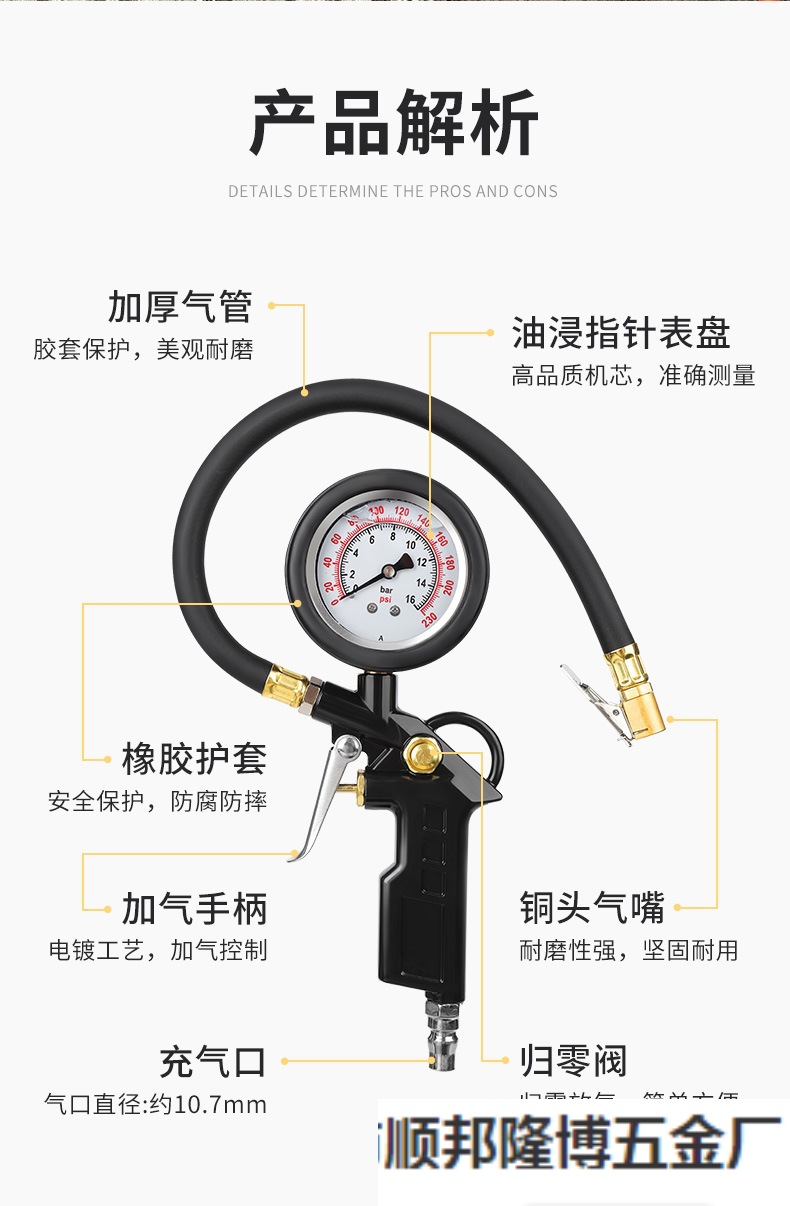 • 고정밀 오일 침지 타이어 압력 게이지 + 공기 파이프
