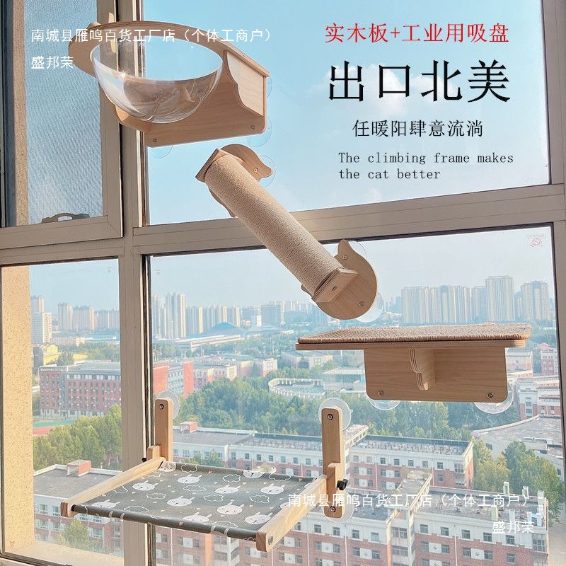 창문 유리창 돌출창 고양이 해먹 펀치 없는 벽걸이형 원목 고양이 클라이밍 프레임 흡입컵 고양이 프레임 사이잘
