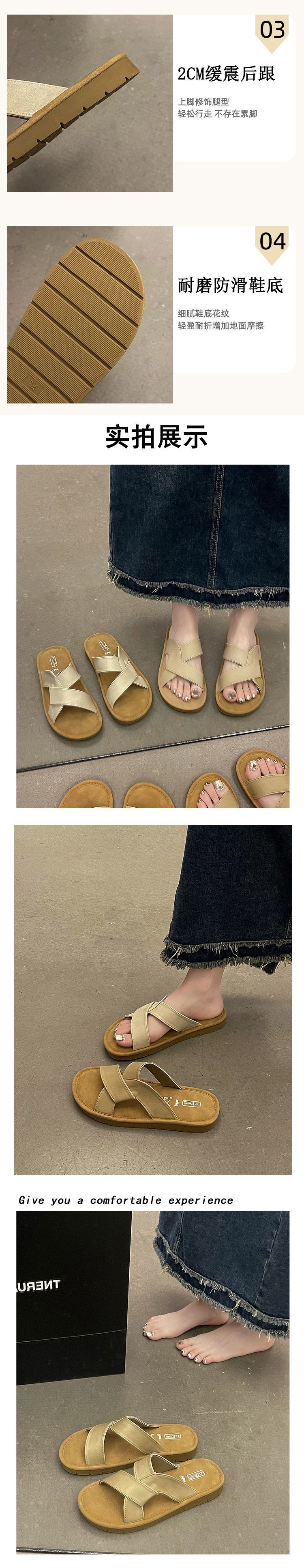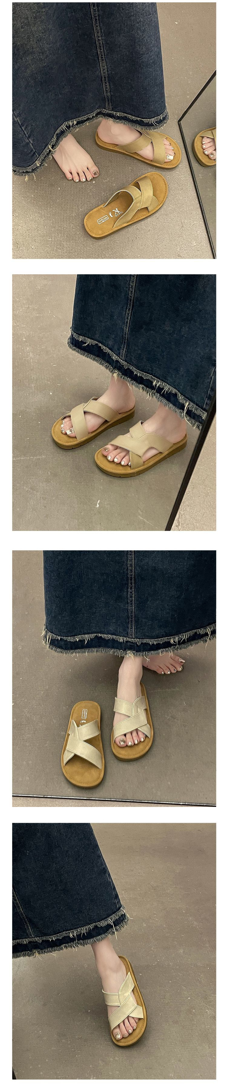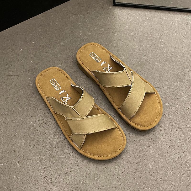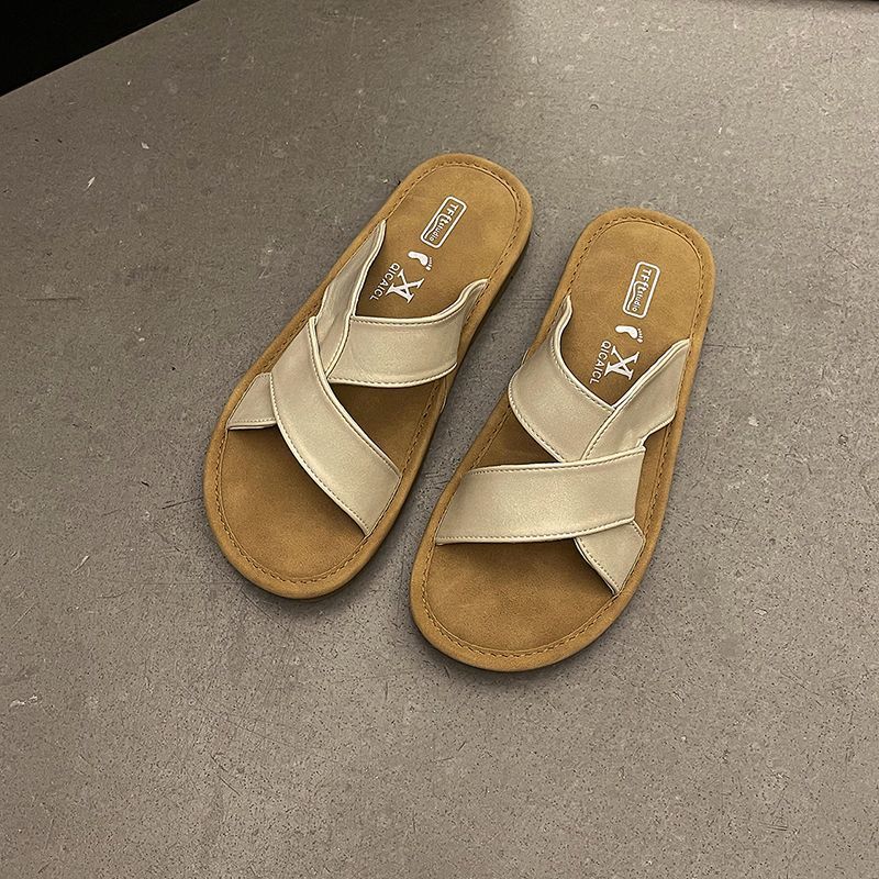 여름 아우터 여성용 소프트솔 크로스 스트랩 슬리퍼 2025 신상 레트로 두꺼운 밑창 버켄스탁 해변 휴가 비치 샌들스토어 가기