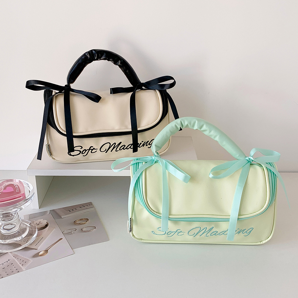 Ins 간단한 대용량 휴대용 저장 가방 학생 고 가치 문구 연필 케이스 PU 휴대용 세척 가방 저장 가방스토어 가기