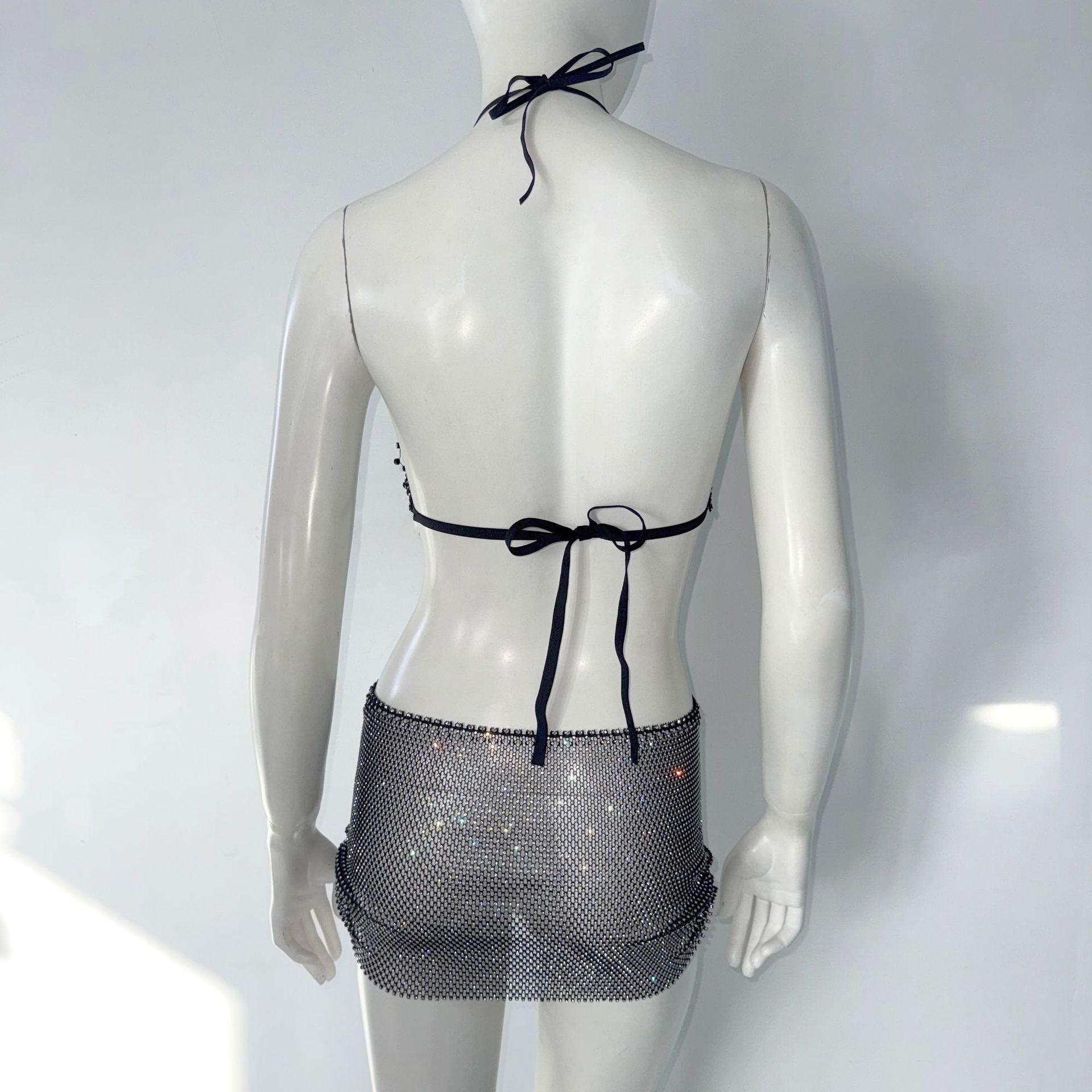 아마존 국경 유럽 및 미국 순 스트레치 낚시 그물 라인스톤 스트랩 스커트 투피스 파티 나이트 샵 원피스스토어 가기