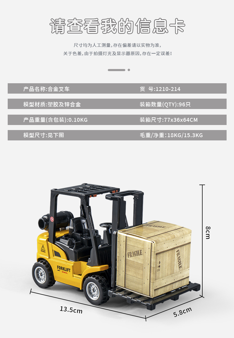 • 1210-214 합금 풀백 엔지니어링 지게차 [창 상자]