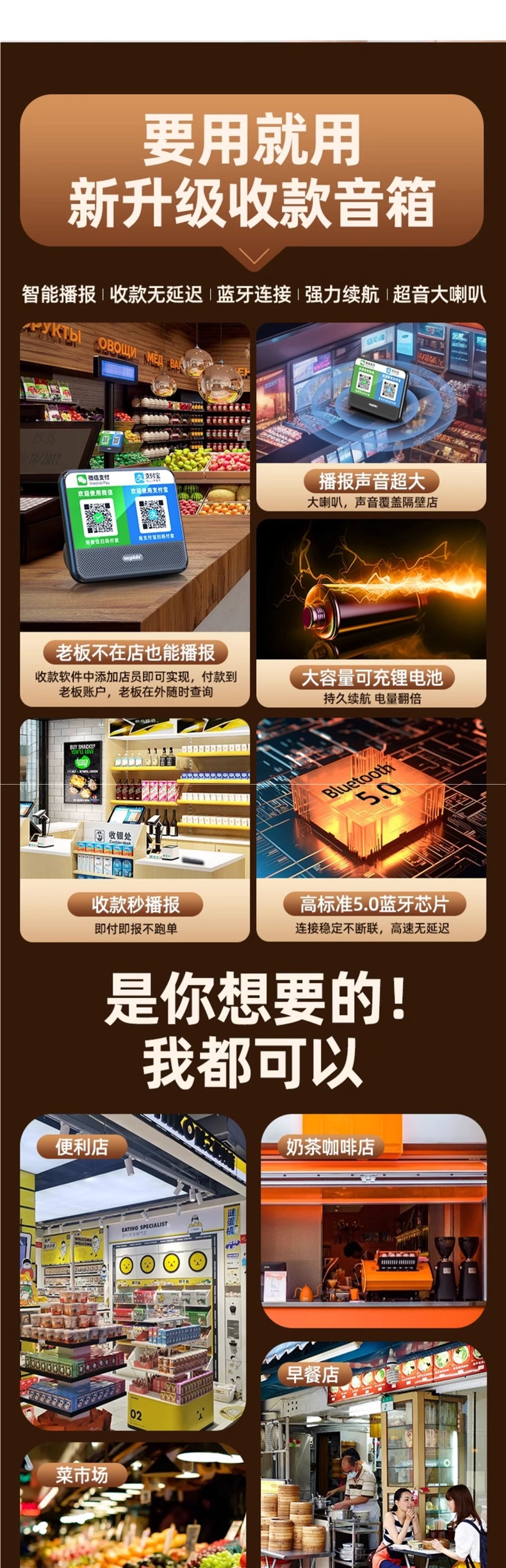 2025 새로운 판매자 팁 오디오 Alipay 음성 방송기 QR 코드 블루투스 스피커 노점용