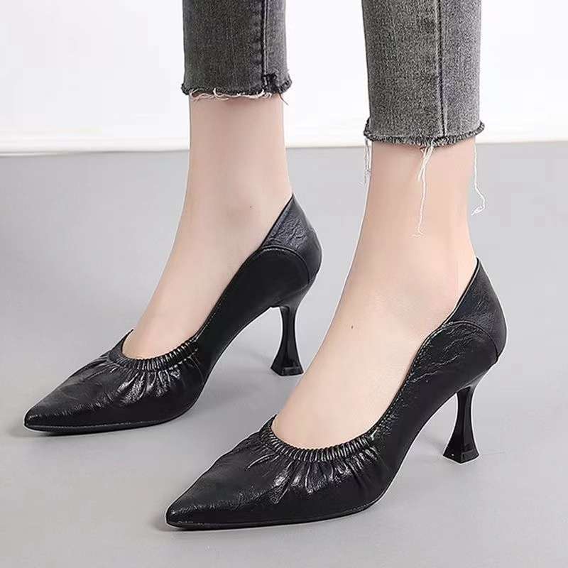여성을 위한 전체 소가죽 하이힐 2025 새로운 다용도 뾰족한 작업화 스틸레토 패션 펌프스 가죽 신발스토어 가기