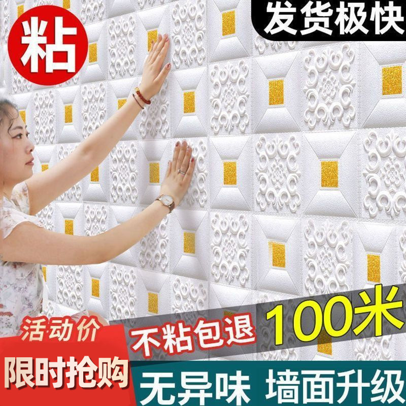 벽지 자기 접착 3D 입체 벽 스티커 방수 방습 벽지 침실 부드러운 가방 거실 장식 TV 배경 벽 스티커스토어 가기
