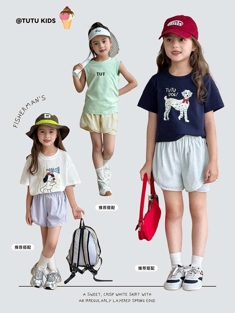 Tutu 아기 코끼리 소녀 반바지 2025 여름 새로운 아동 의류 속건 스포츠 바지 어린이 멋진 휴가 투피스 바지스토어 가기