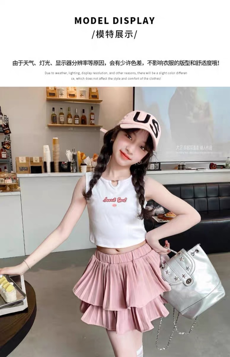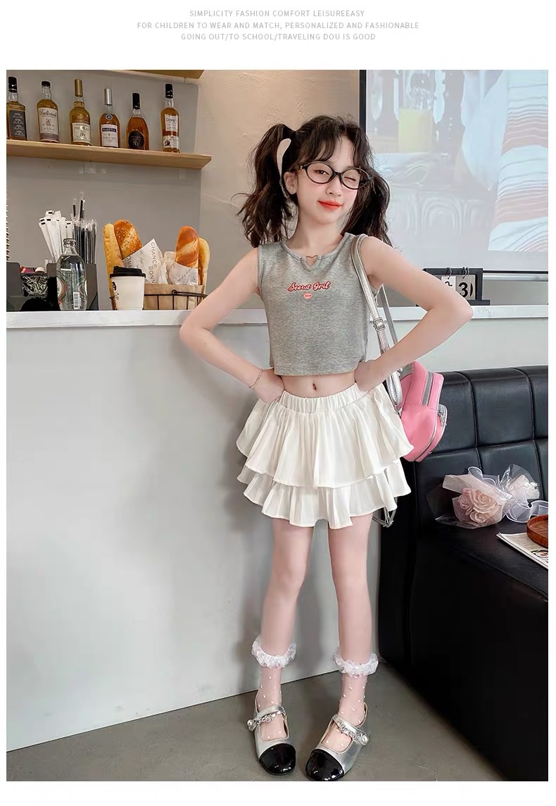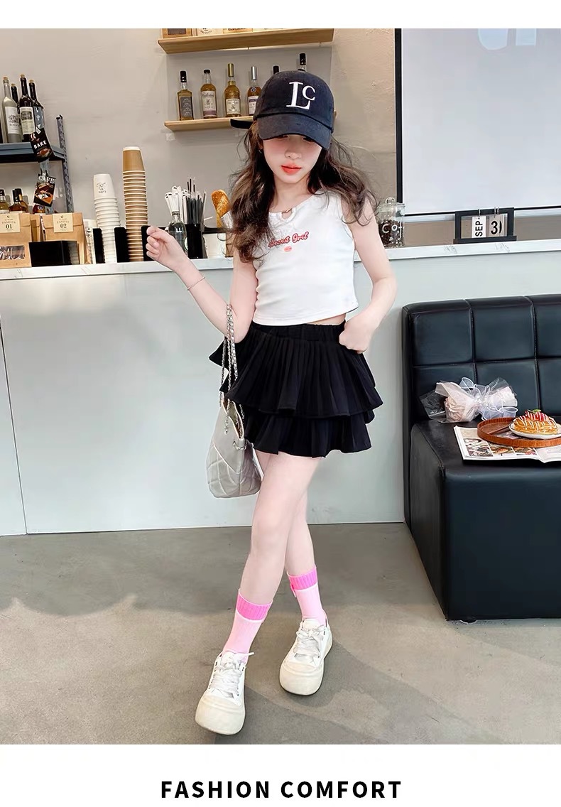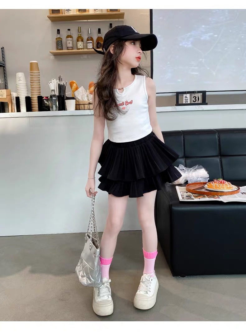 여아용 짧은 스커트, 여름 케이크 스커트, 한국식 단색 캐주얼 레이어드 스커트, 큰 어린이를 위한 다재다능하고 패셔너블한 스커트