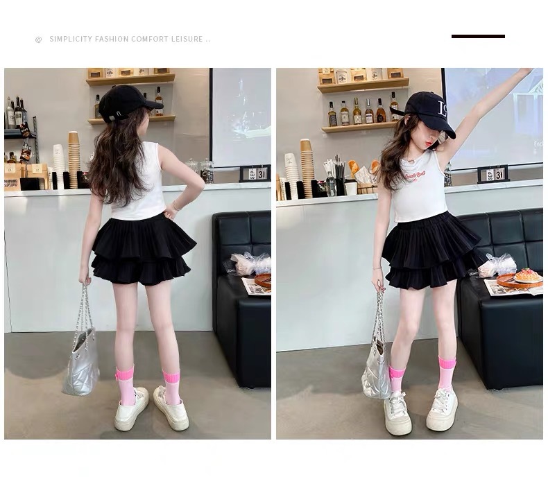 여아용 짧은 스커트, 여름 케이크 스커트, 한국식 단색 캐주얼 레이어드 스커트, 큰 어린이를 위한 다재다능하고 패셔너블한 스커트스토어 가기