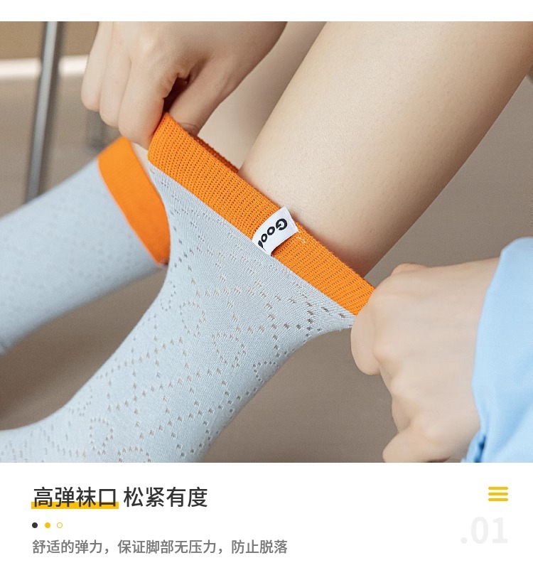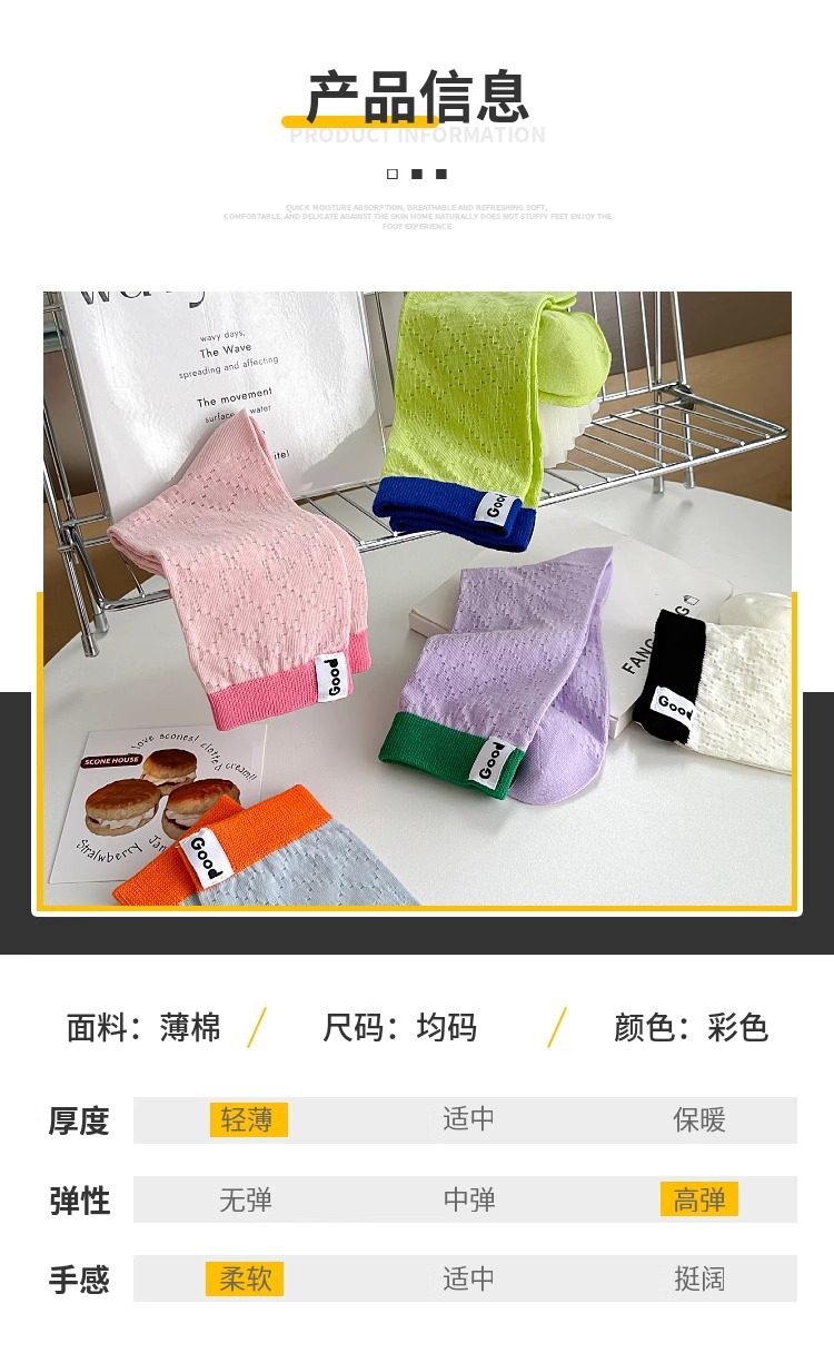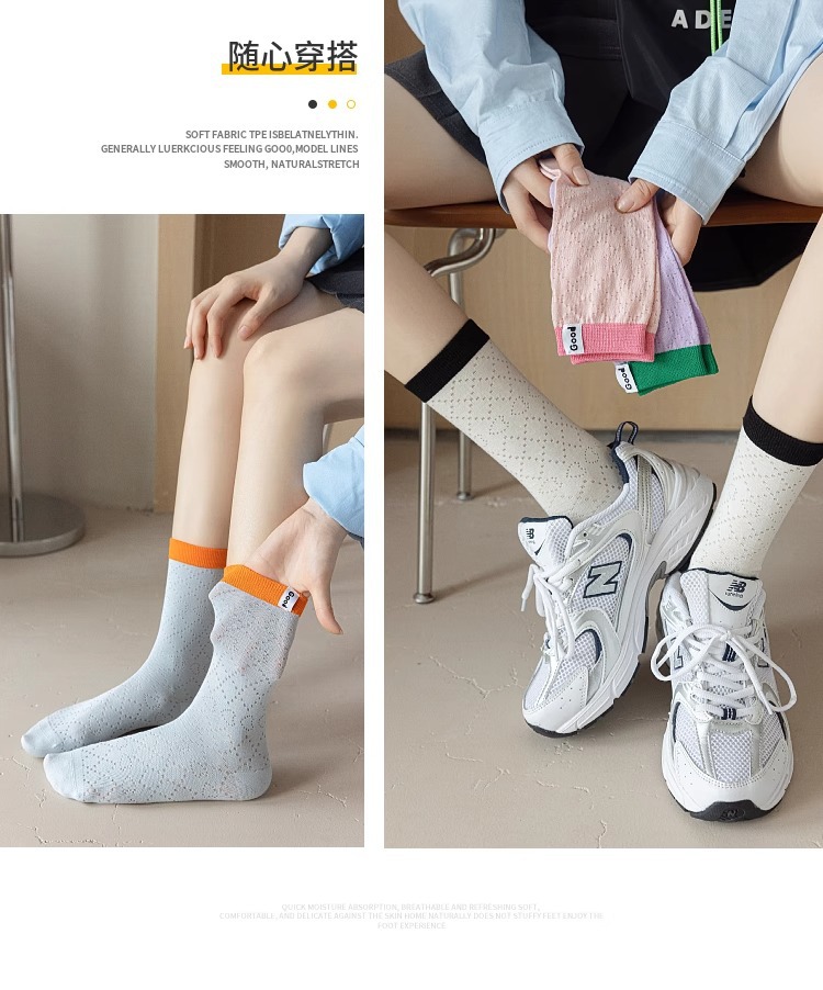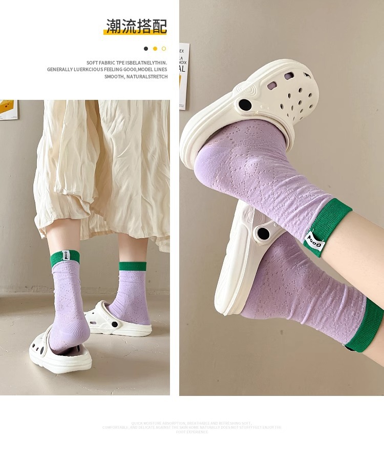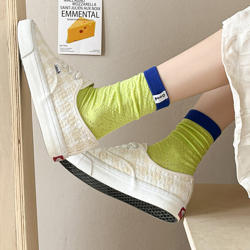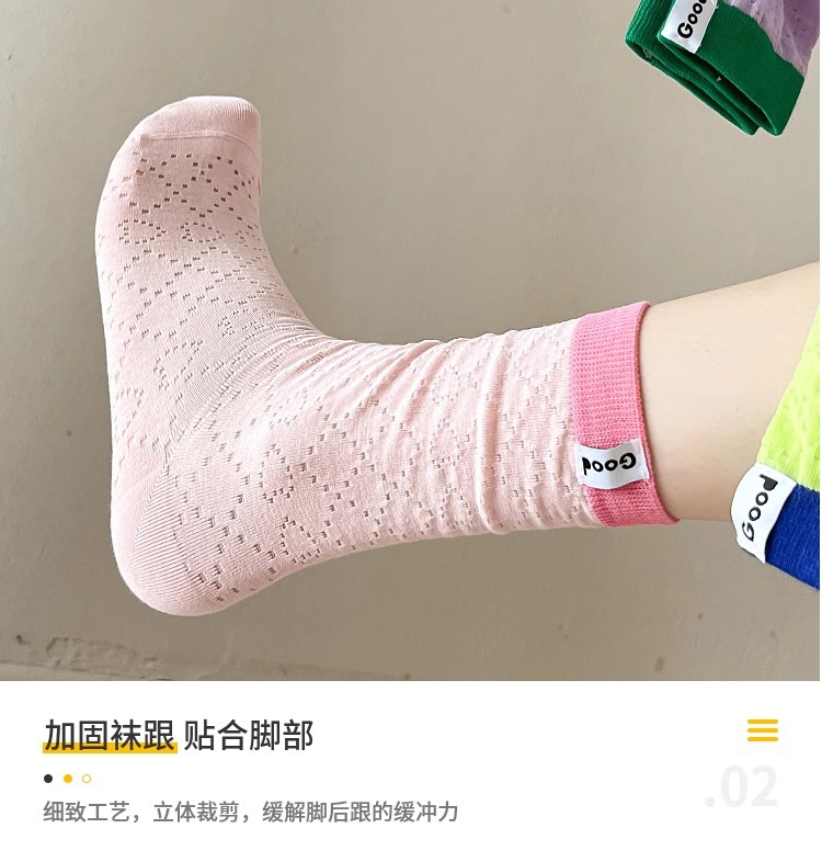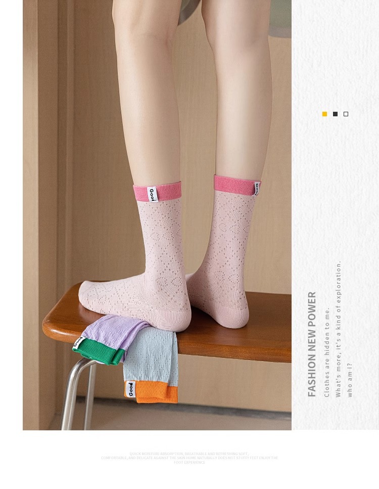 도파민 양말 여성 가을, 여름 순수 코튼 메쉬 양말 트렌디 컬러 미드 튜브 Douyin 같은 스타일 외부 양말스토어 가기