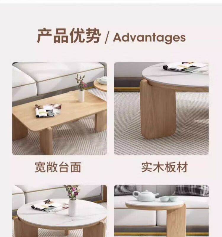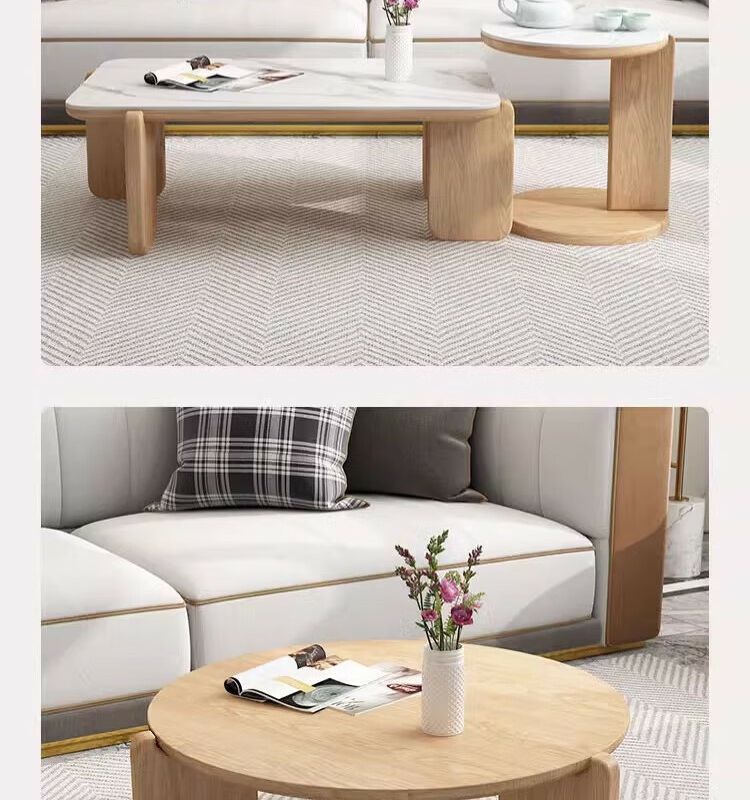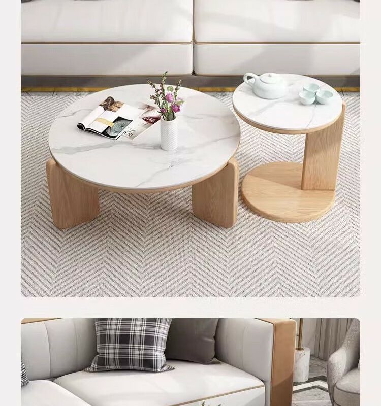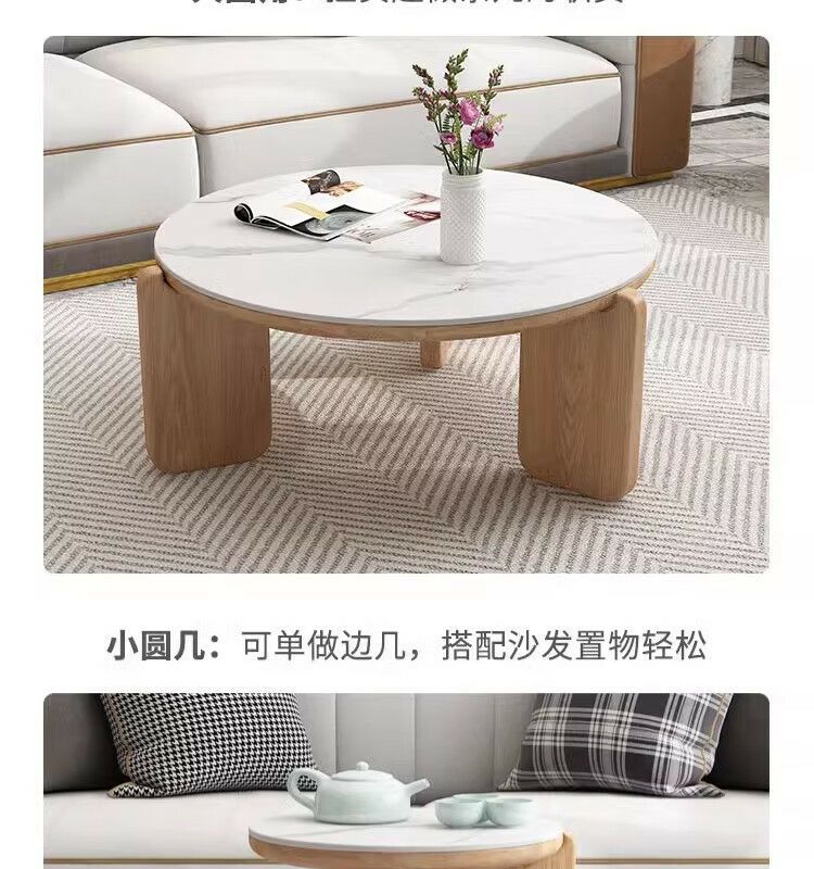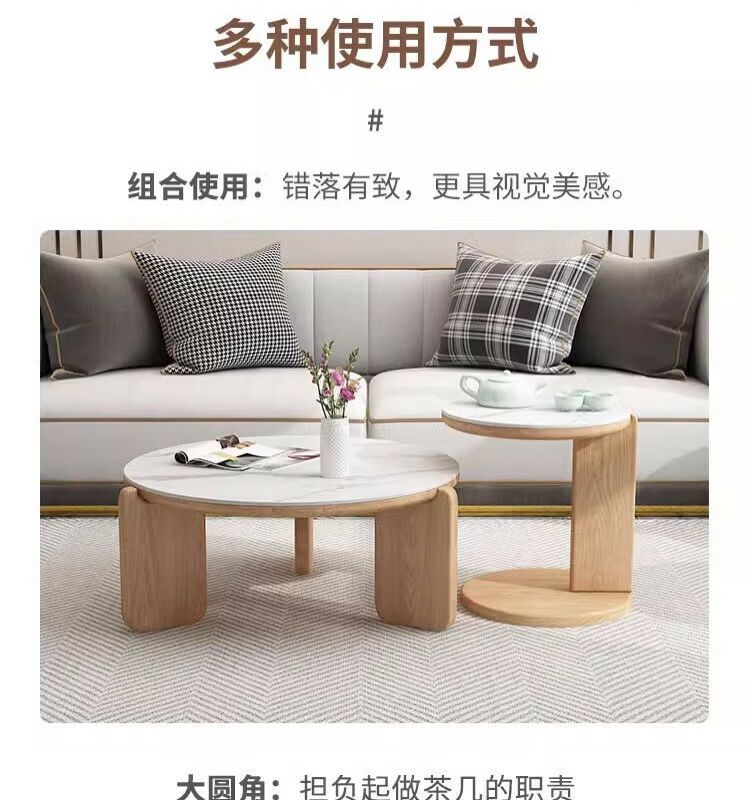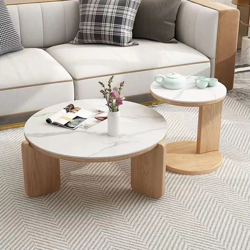 둥근 단단한 나무 슬레이트 커피 테이블 인터넷 연예인 간단한 현대 작은 아파트 북유럽 커피 테이블 테이블 거실 소파 사이드 테이블 조합